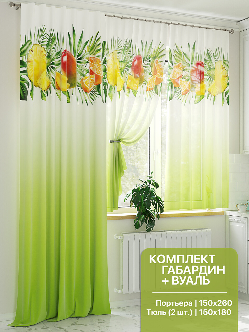 924001 Портьера 150х260 см. — 1 шт., вуаль 150х170 см. — 2 шт., ламбрекен 300х40 см. — 1 шт.