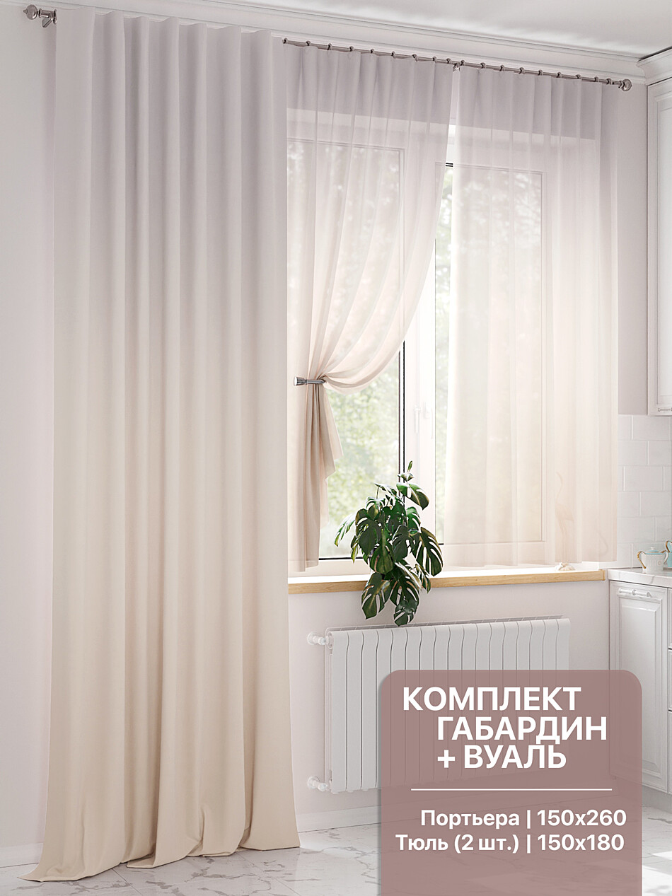 524078250 Портьера 150х250 см. — 1 шт., вуаль 150х180 см — 2 шт.