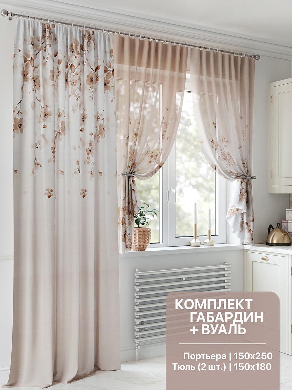 547067 Портьера 150х250 см — 1 шт., вуаль 150х180 см — 2 шт.