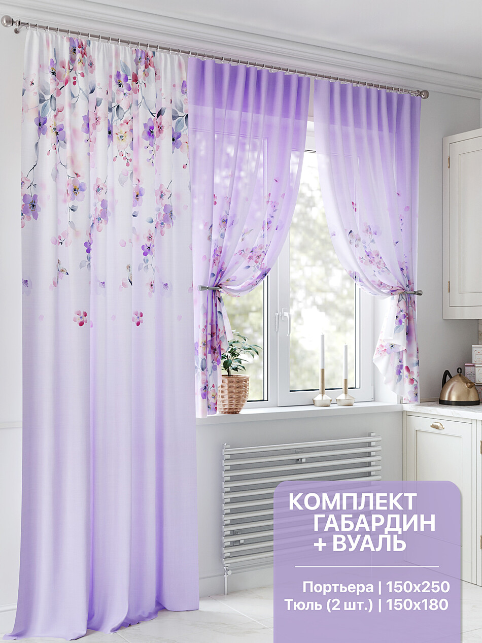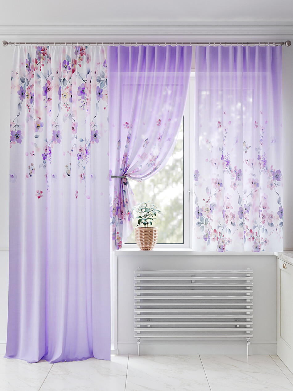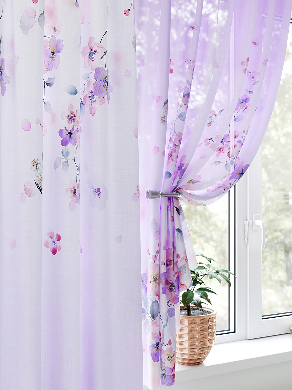 Шторы с фиолетовым цветком