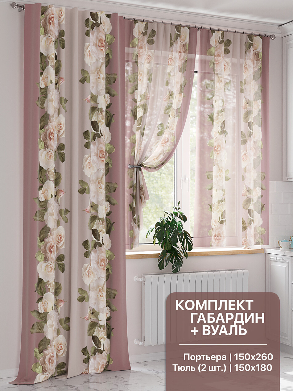 924021 Портьера 150х260 см. — 1 шт., вуаль 150х170 см. — 2 шт., ламбрекен 300х40 см. — 1 шт.