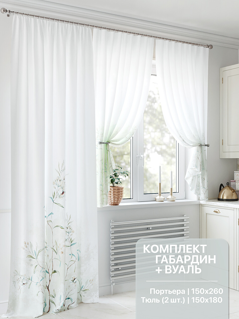 924009 Портьера 150х260 см. — 1 шт., вуаль 150х170 см. — 2 шт., ламбрекен 300х40 см. — 1 шт.