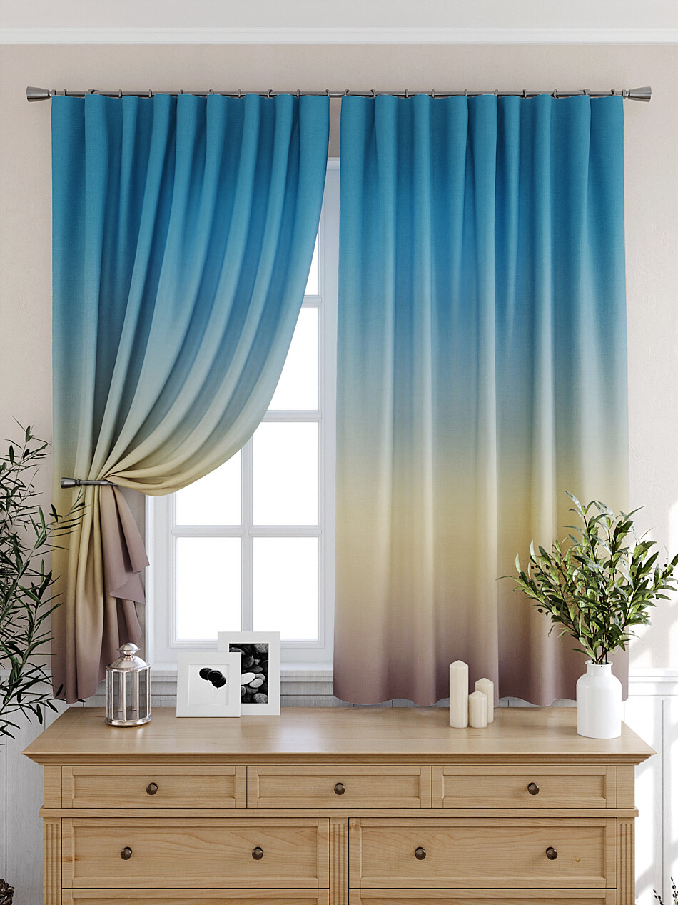 Шторы бежево-голубые