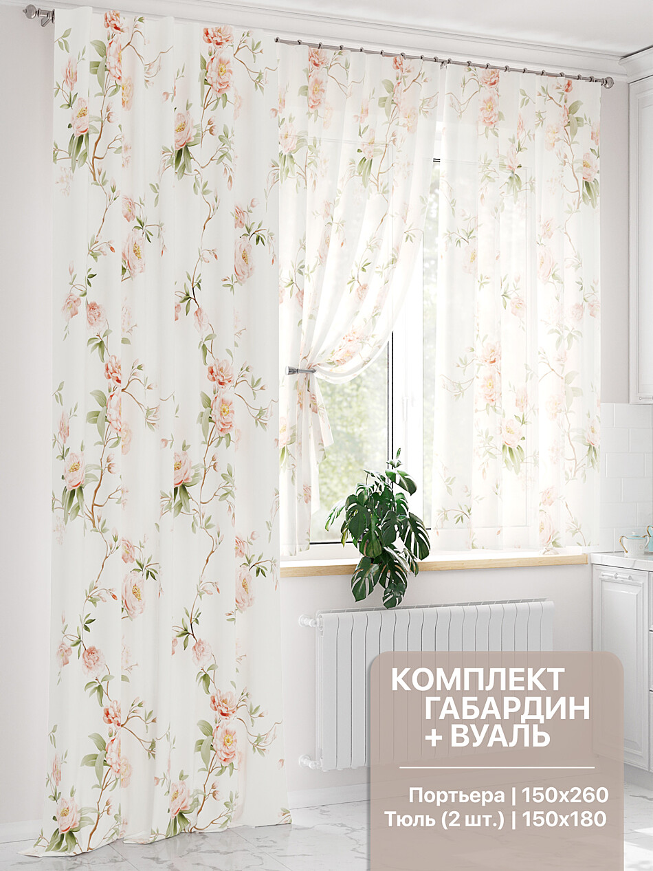 524199 Портьера 150х260 см. — 1 шт., вуаль 150х180 см — 2 шт.