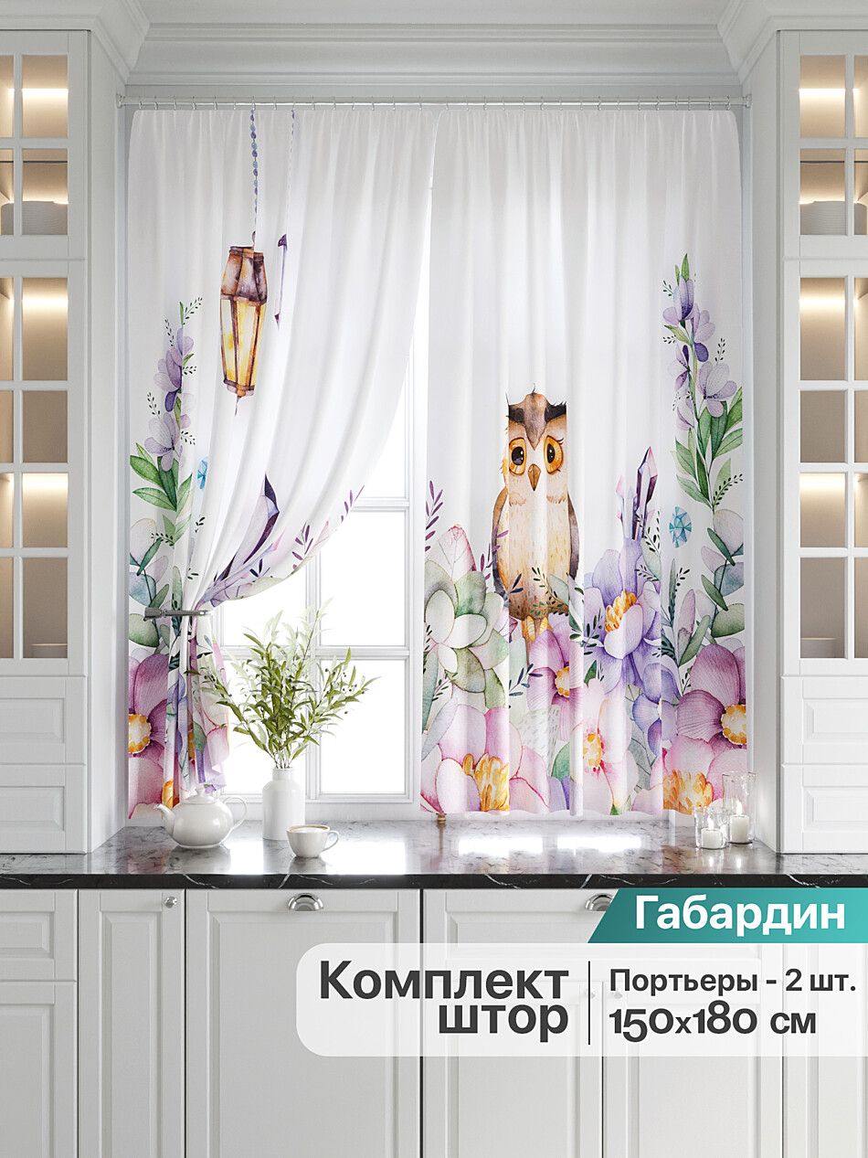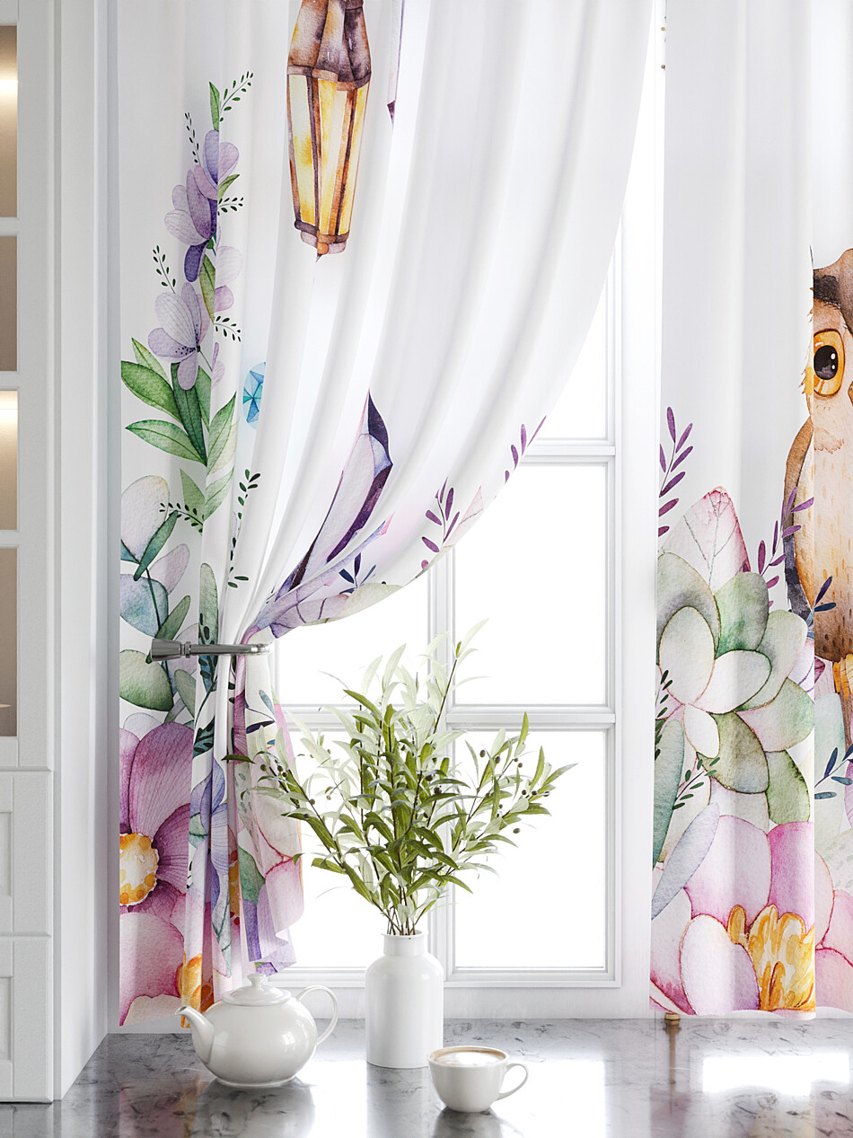 Шторы с фиолетовым цветком