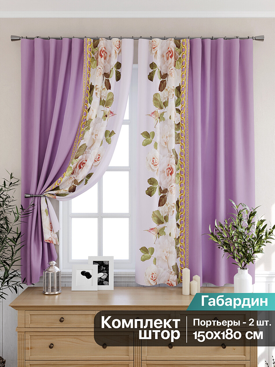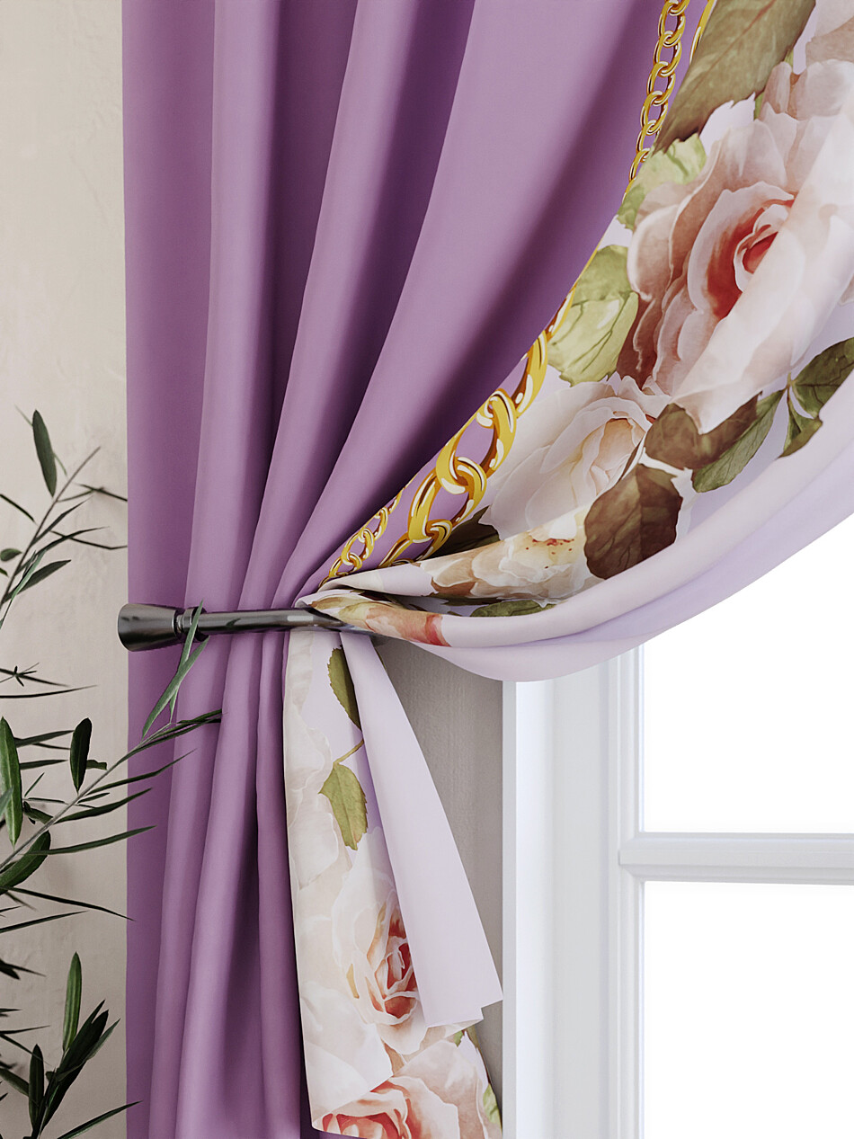 Шторы с фиолетовым цветком
