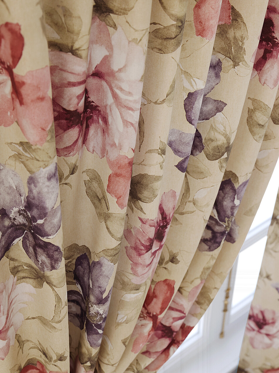 Шторы бордовые с цветами