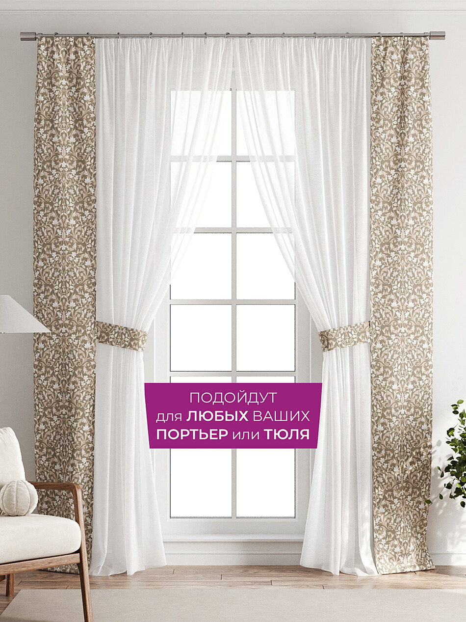 Портьеры на шторной ленте просты в управлении и служат не менее 10 лет.