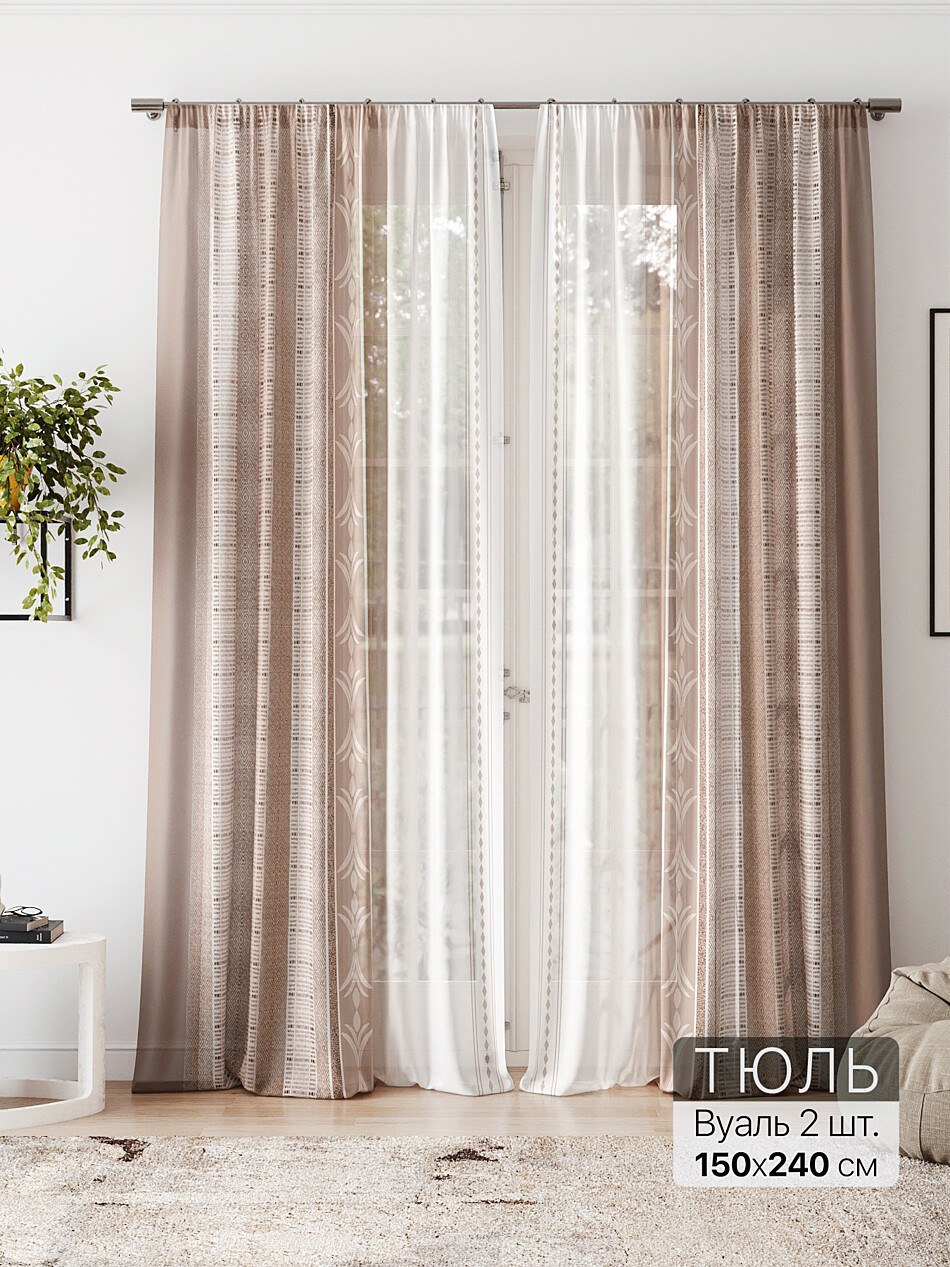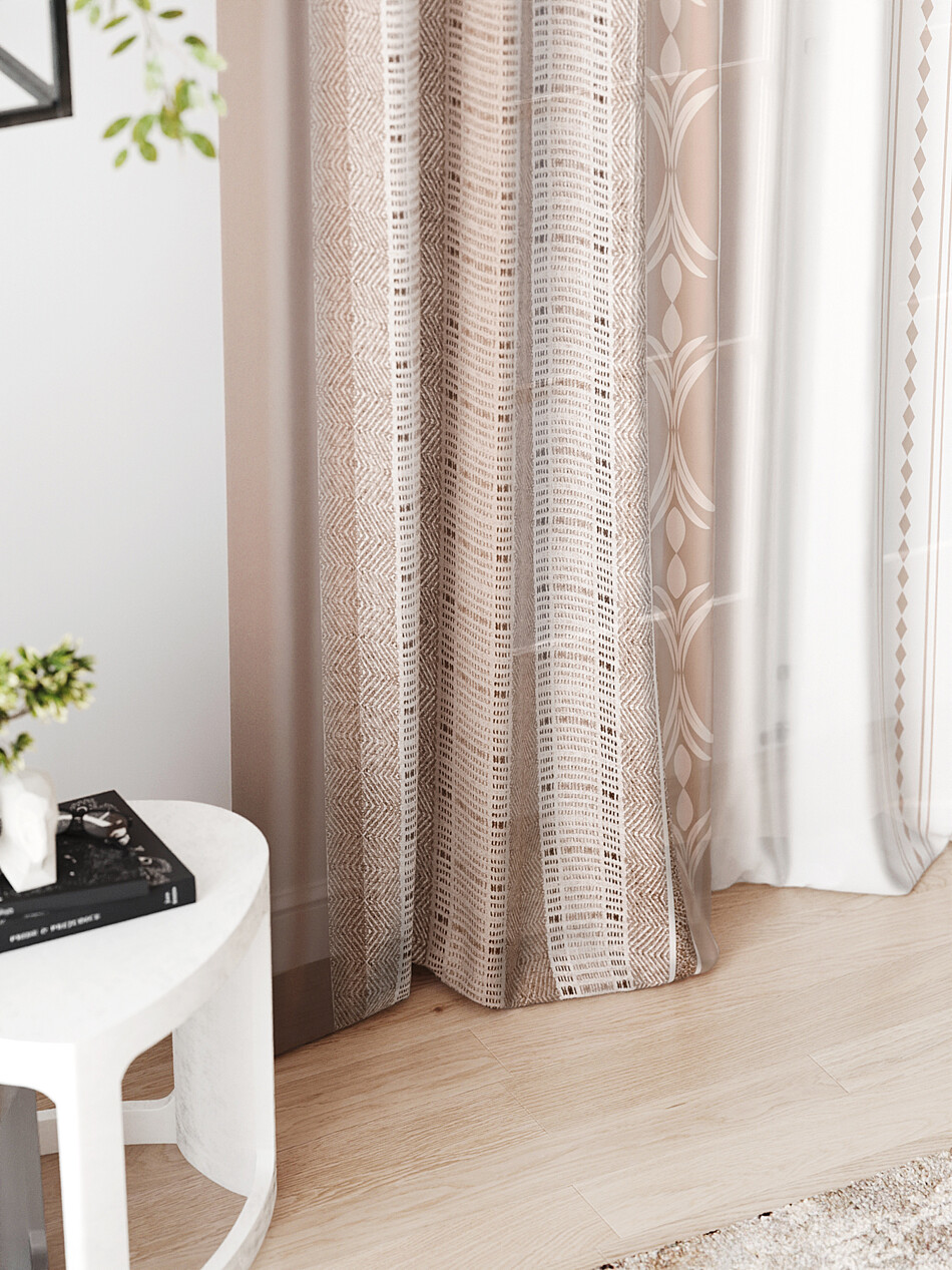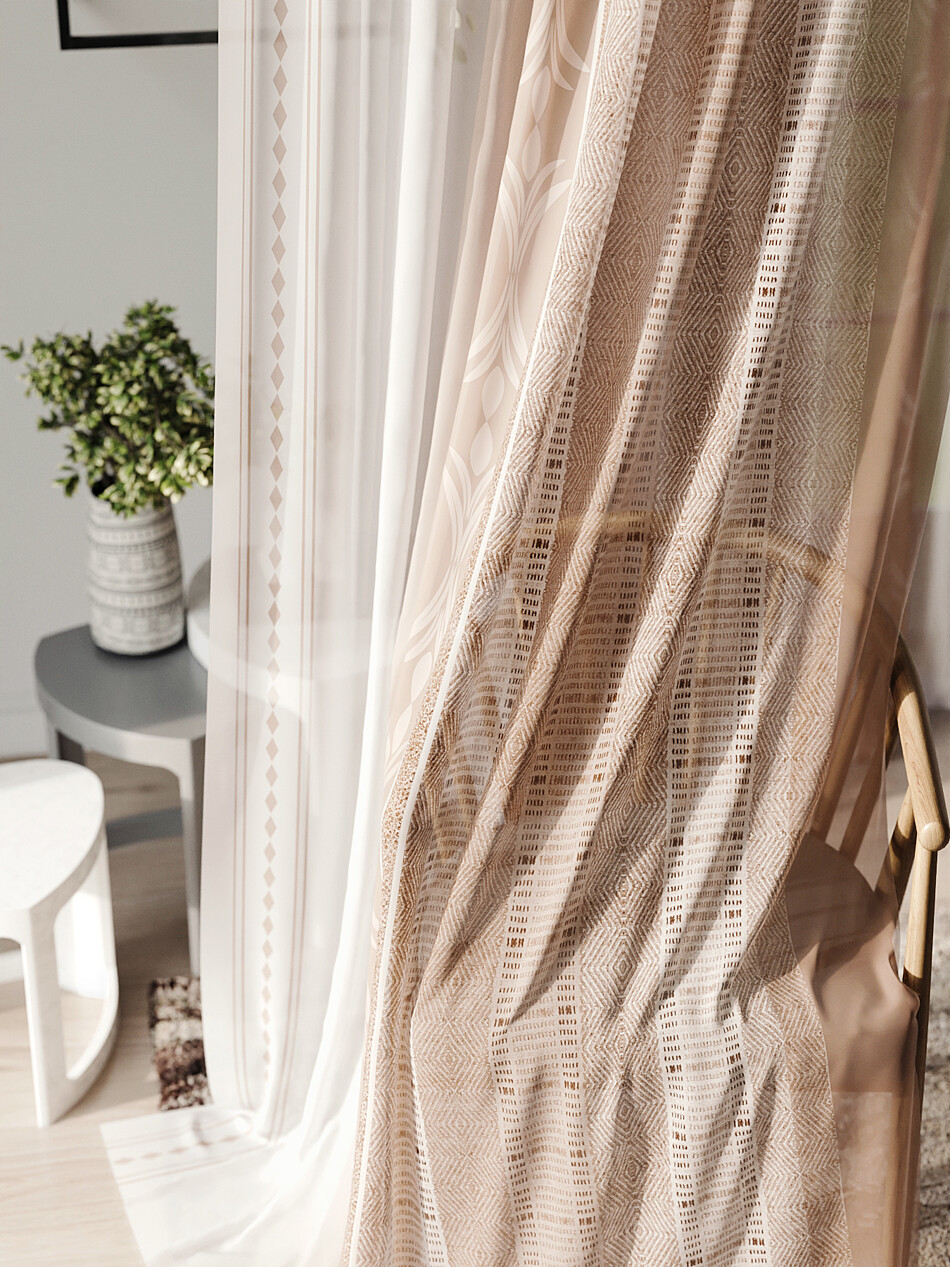 Шторы из тюля бежевого цвета с ажурным рисунком