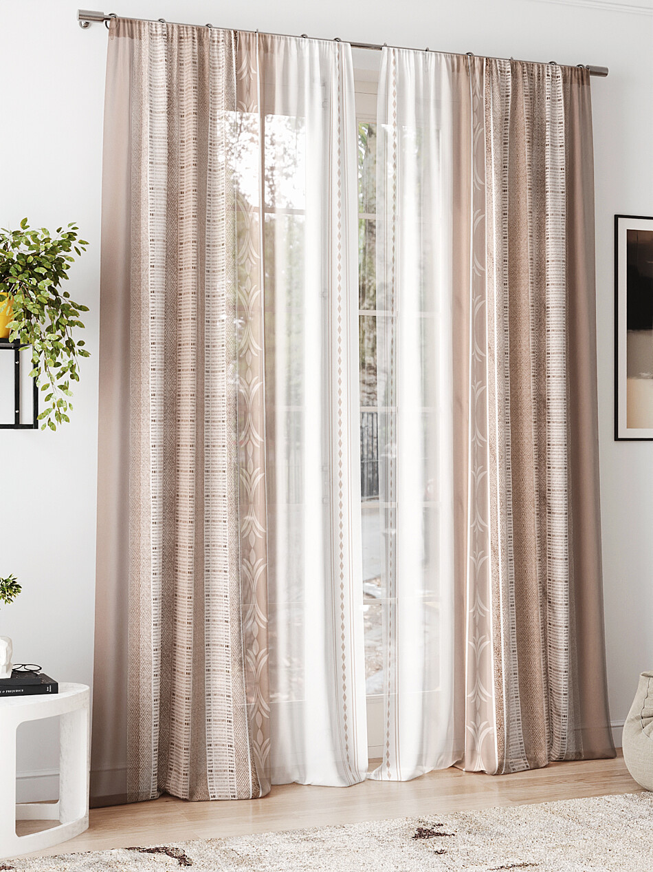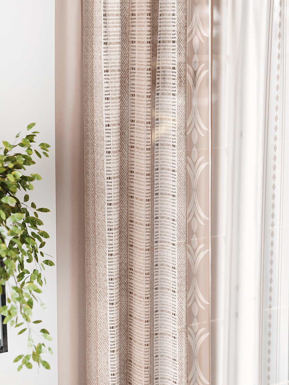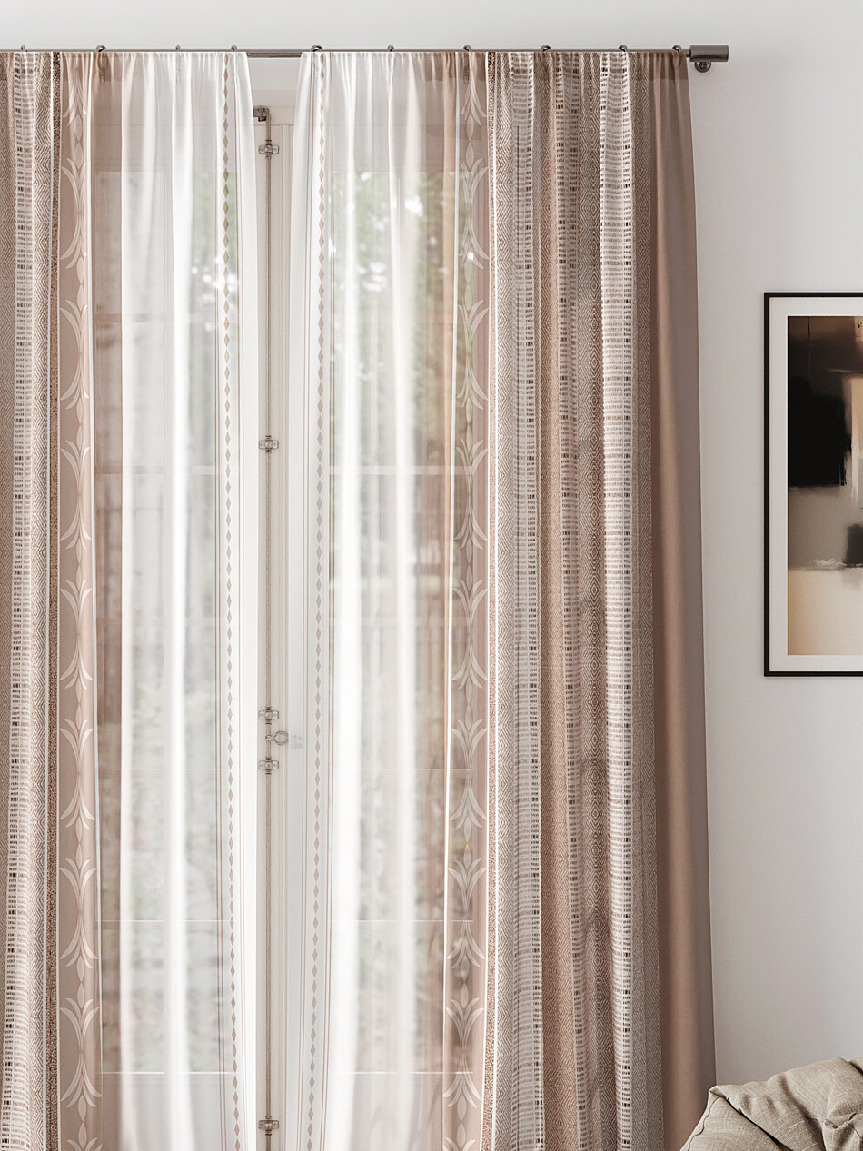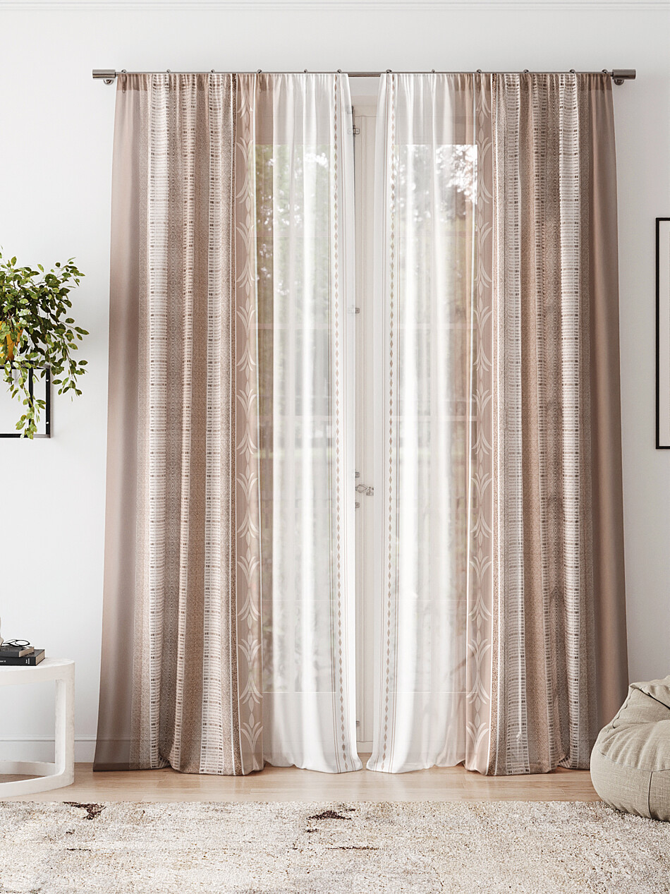 Шторы из тюля бежевого цвета с ажурным рисунком