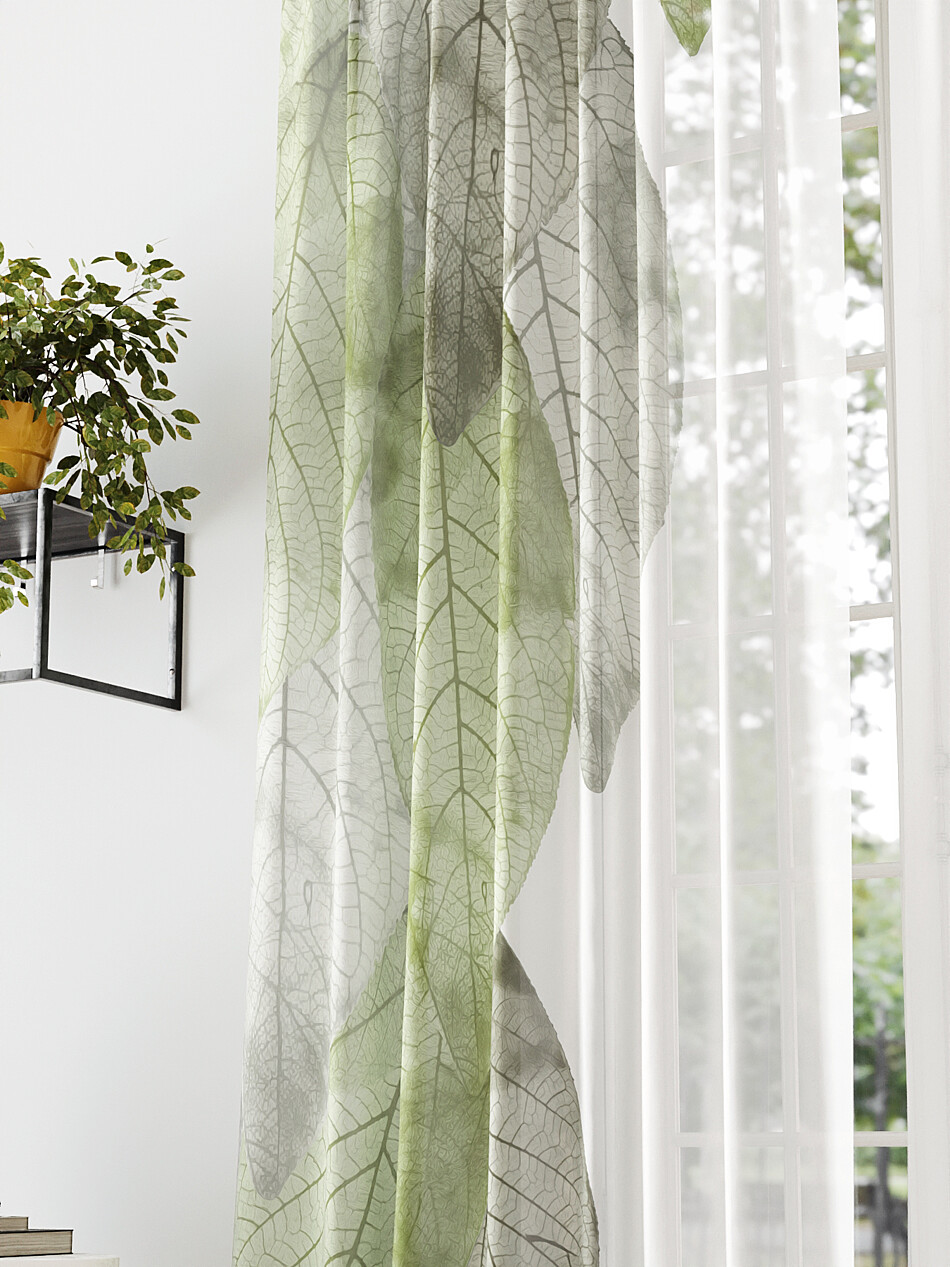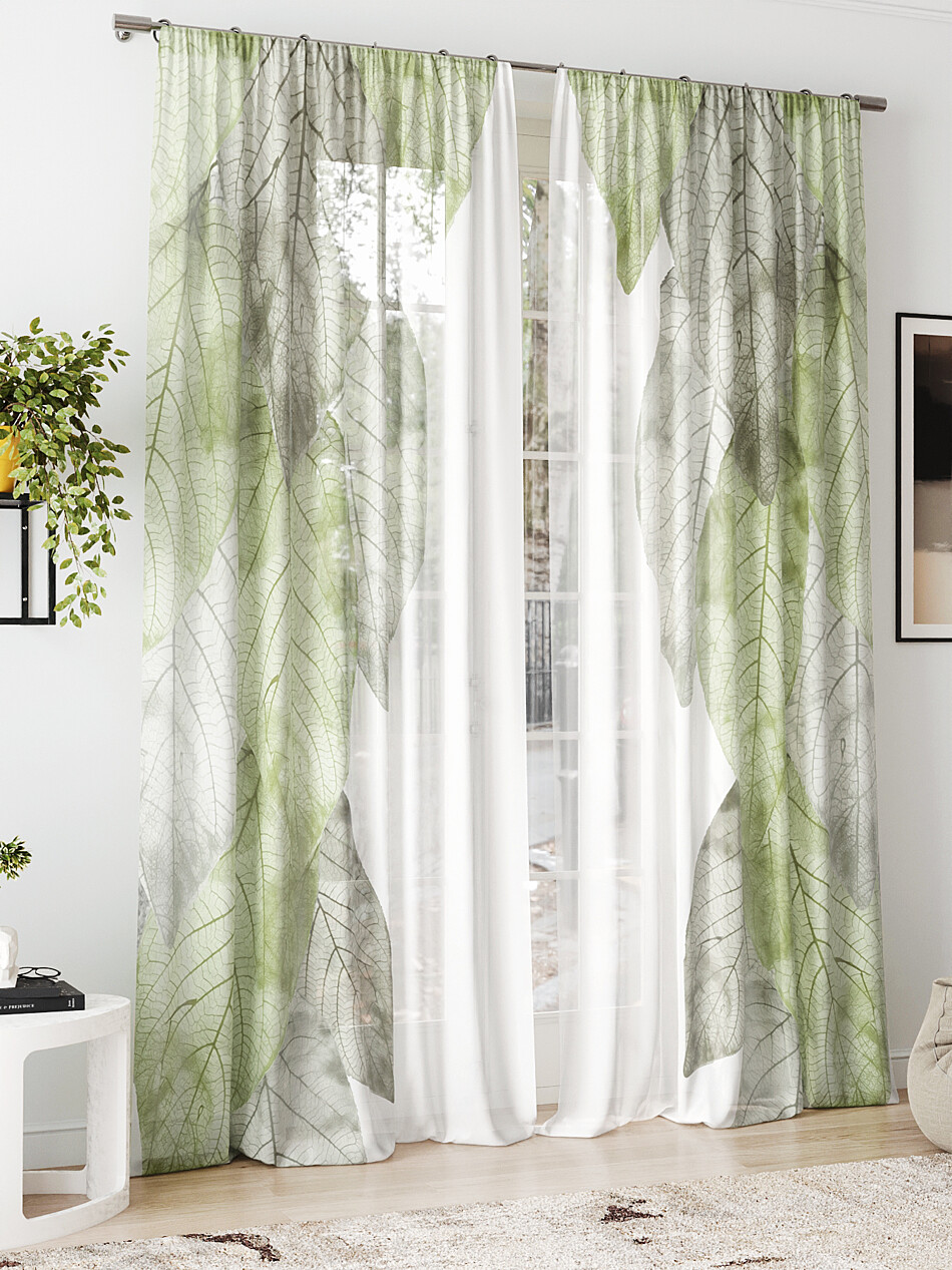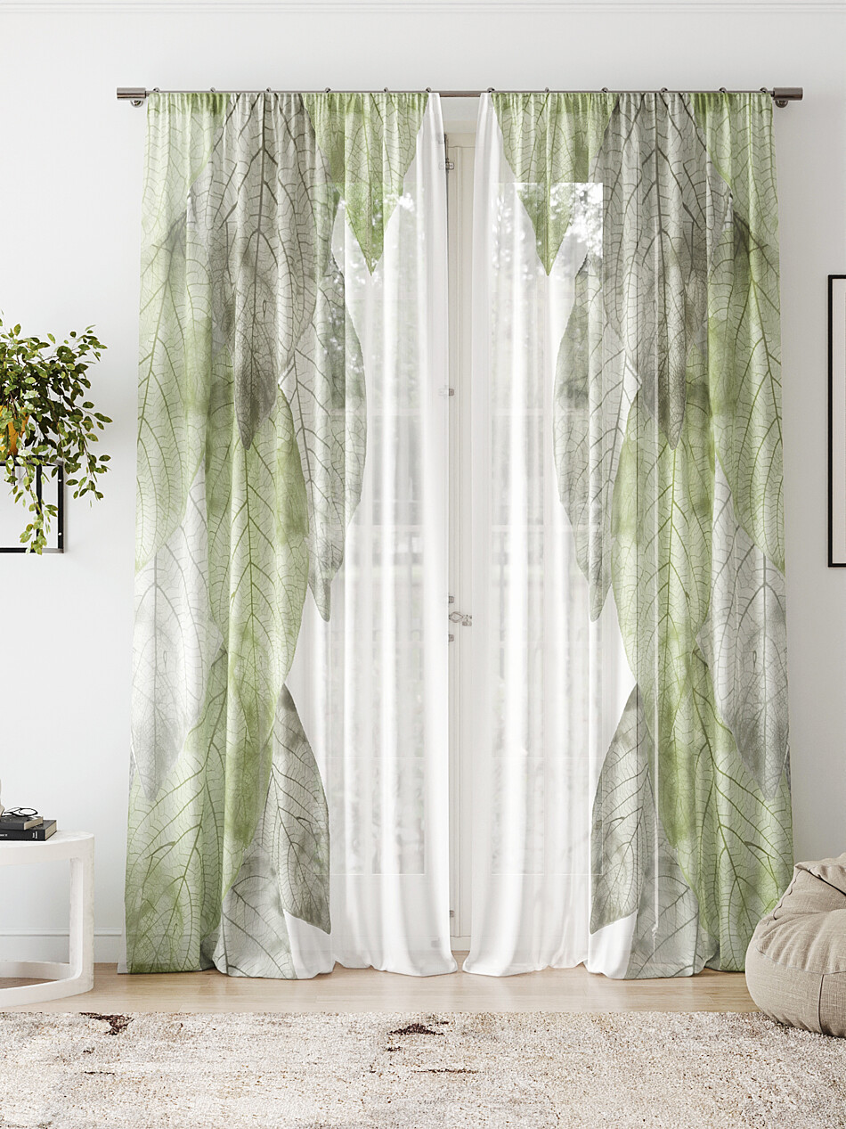 Шторы из тюля бежевого цвета с рисунком бабочки