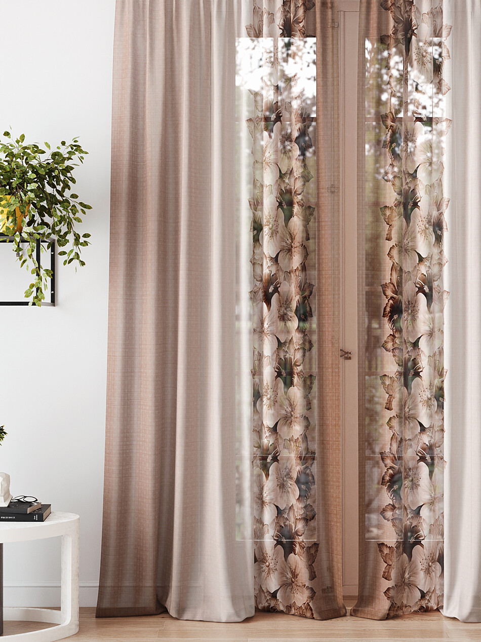 Шторы из тюля бежевого цвета с рисунком бабочки