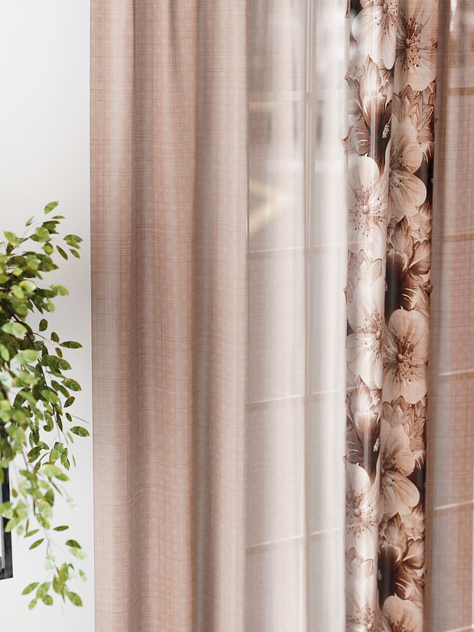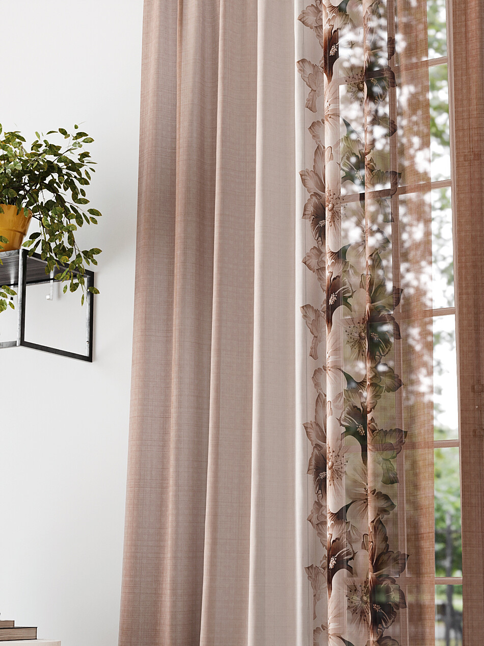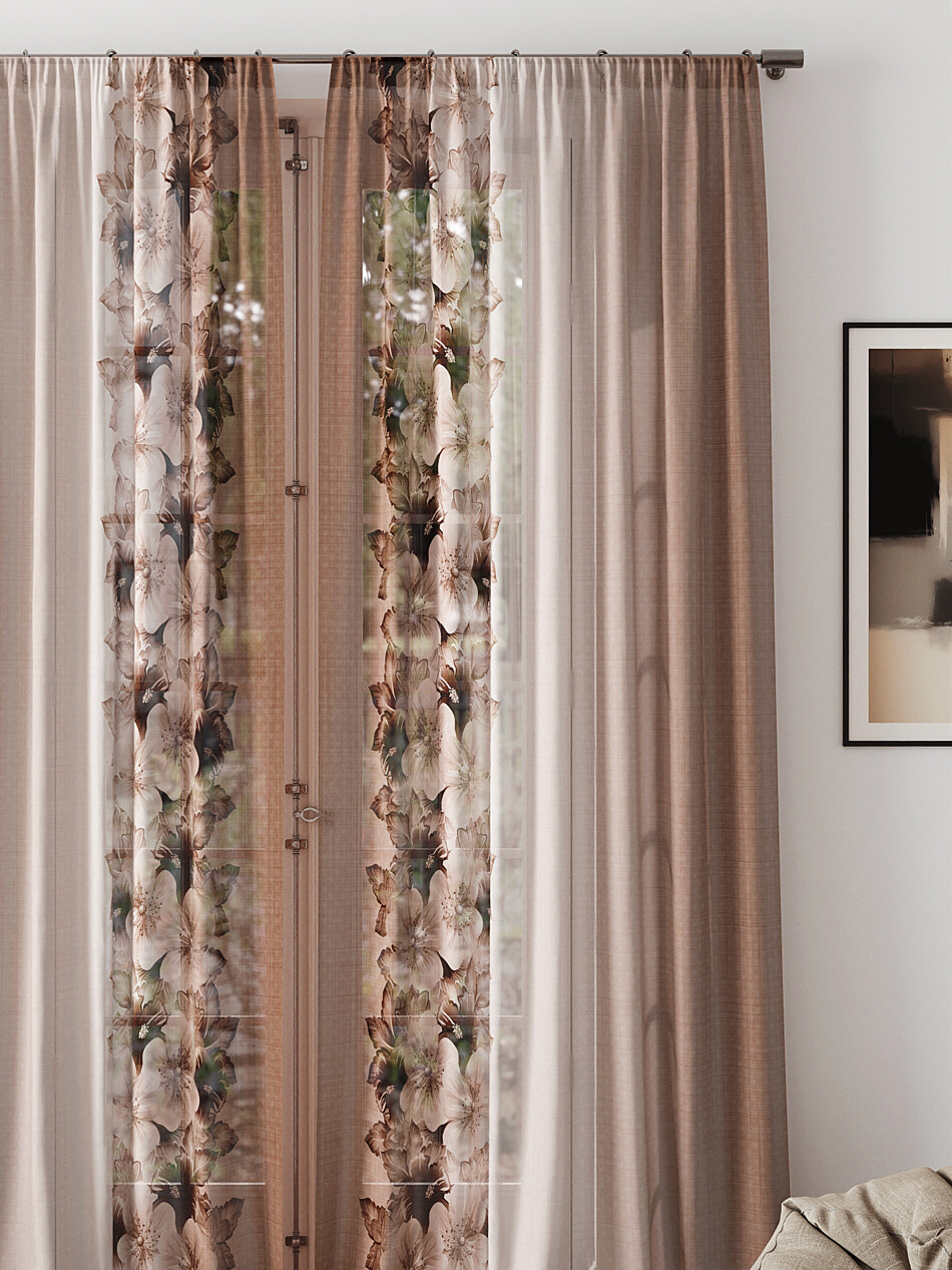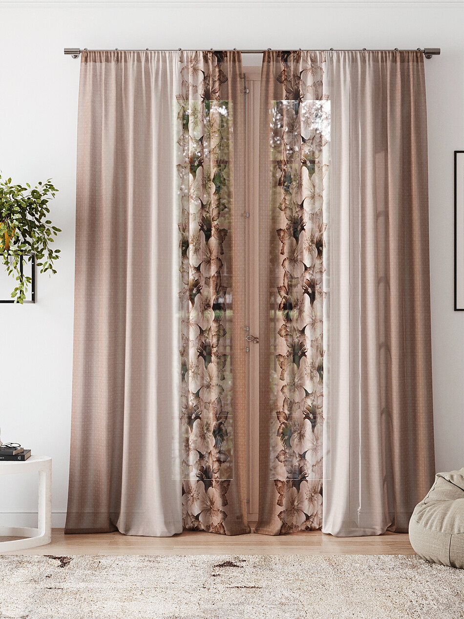 Шторы из тюля бежевого цвета с ажурным рисунком