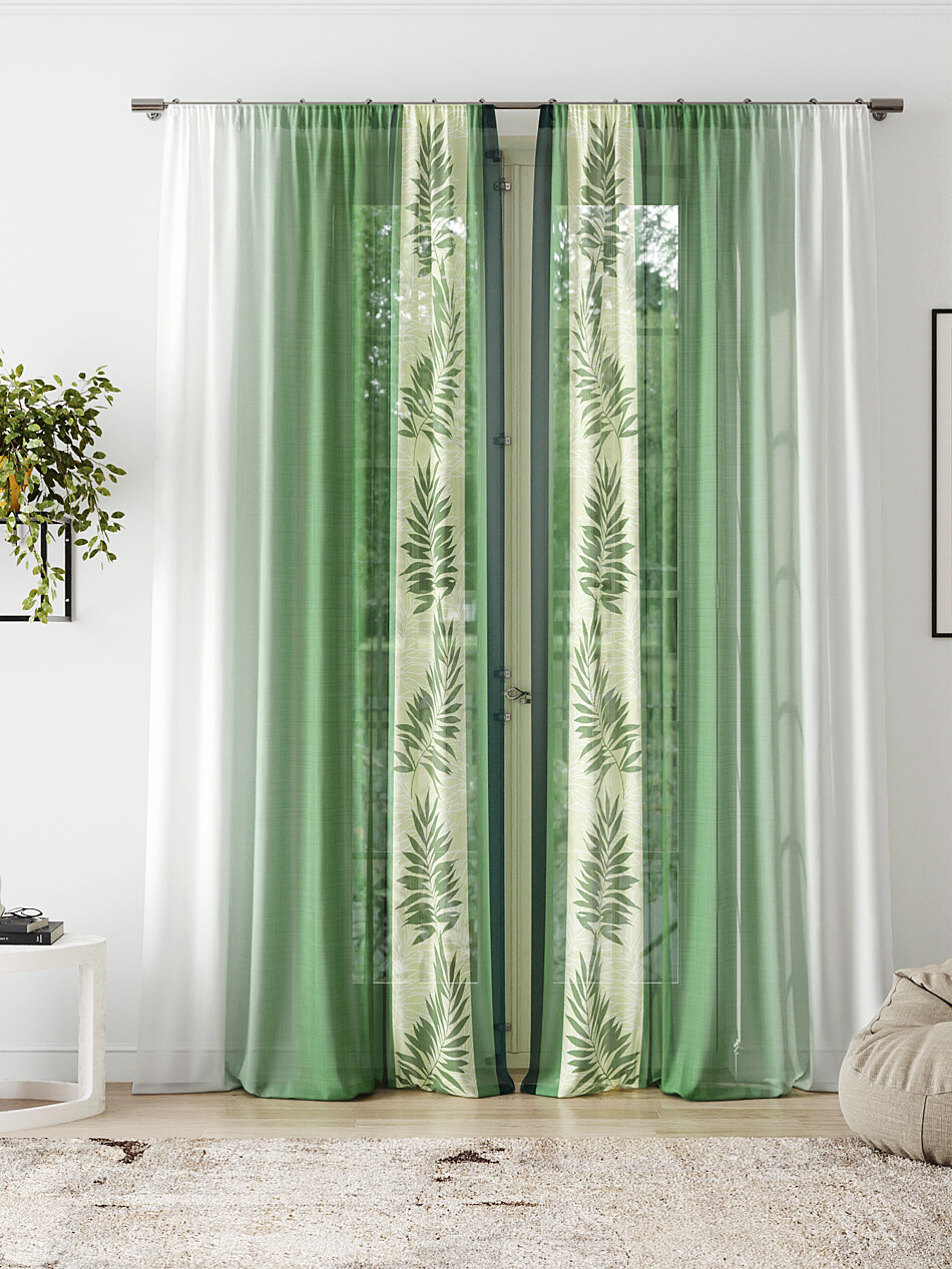 Шторы из тюля бежевого цвета с рисунком бабочки