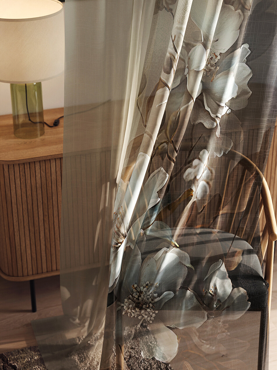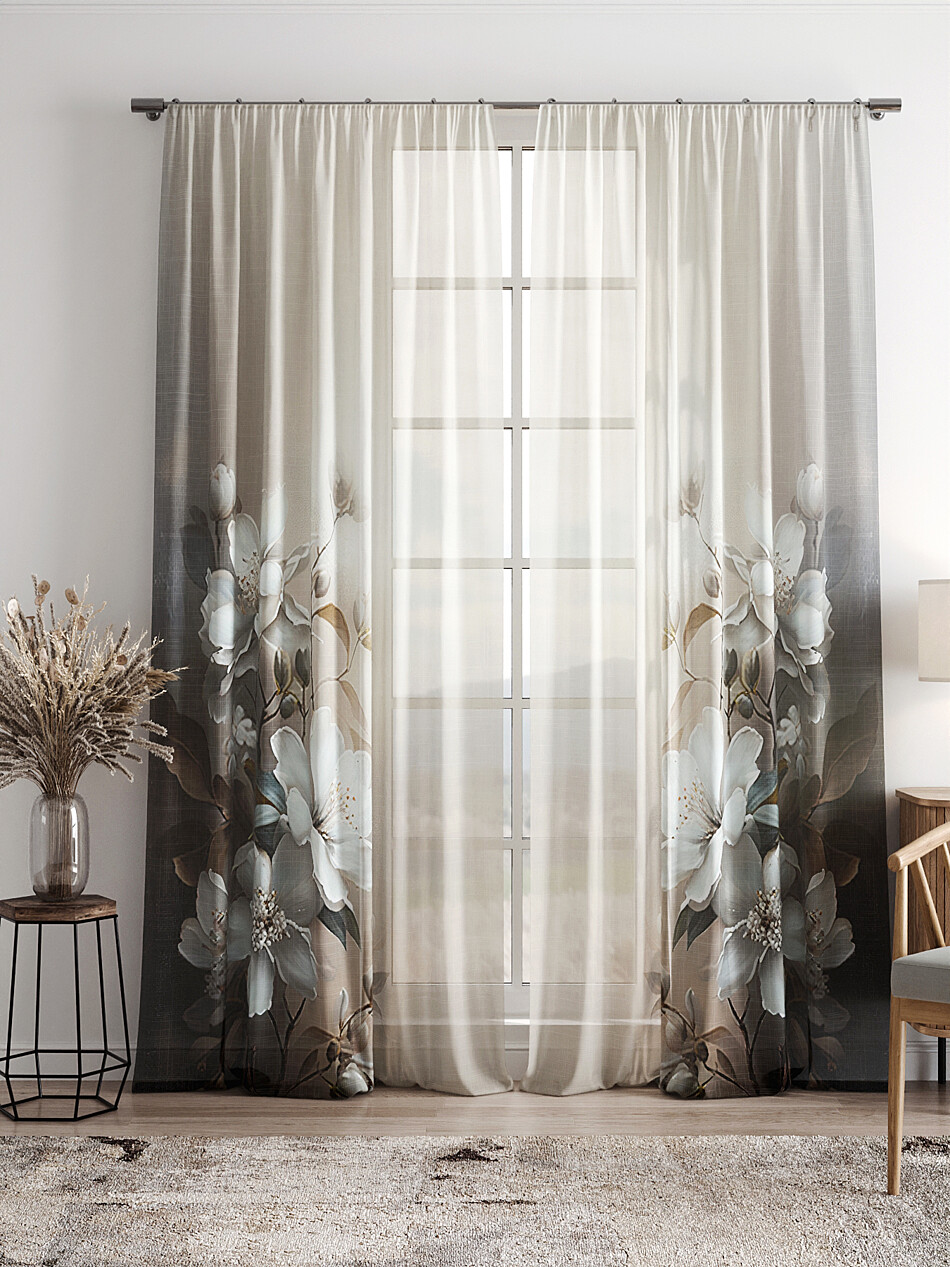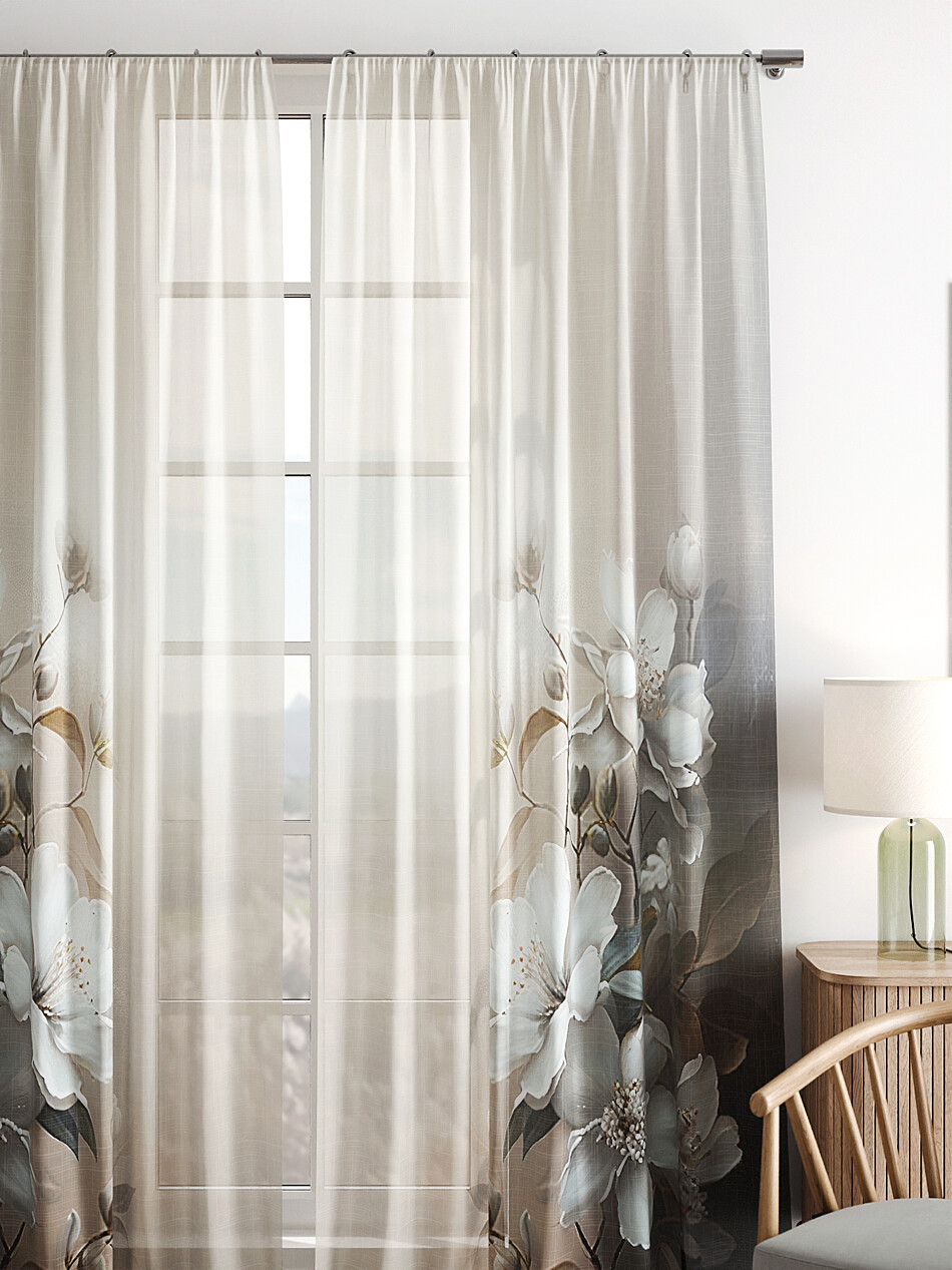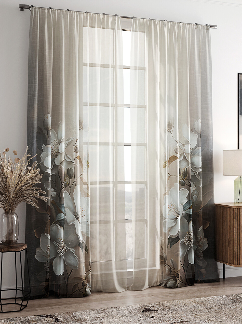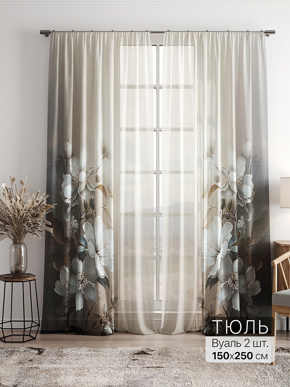 Шторы из тюля бежевого цвета с рисунком бабочки