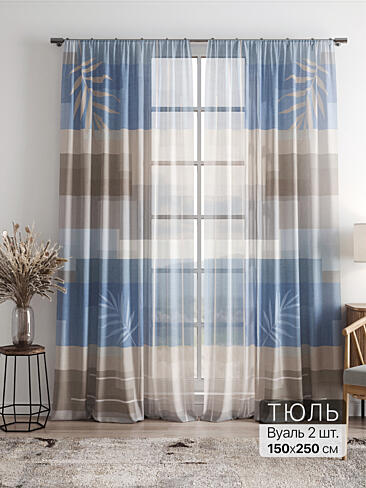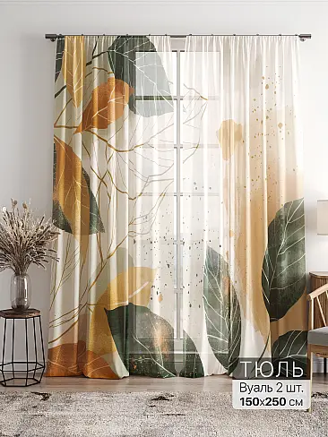 Шторы из тюля бежевого цвета с рисунком бабочки