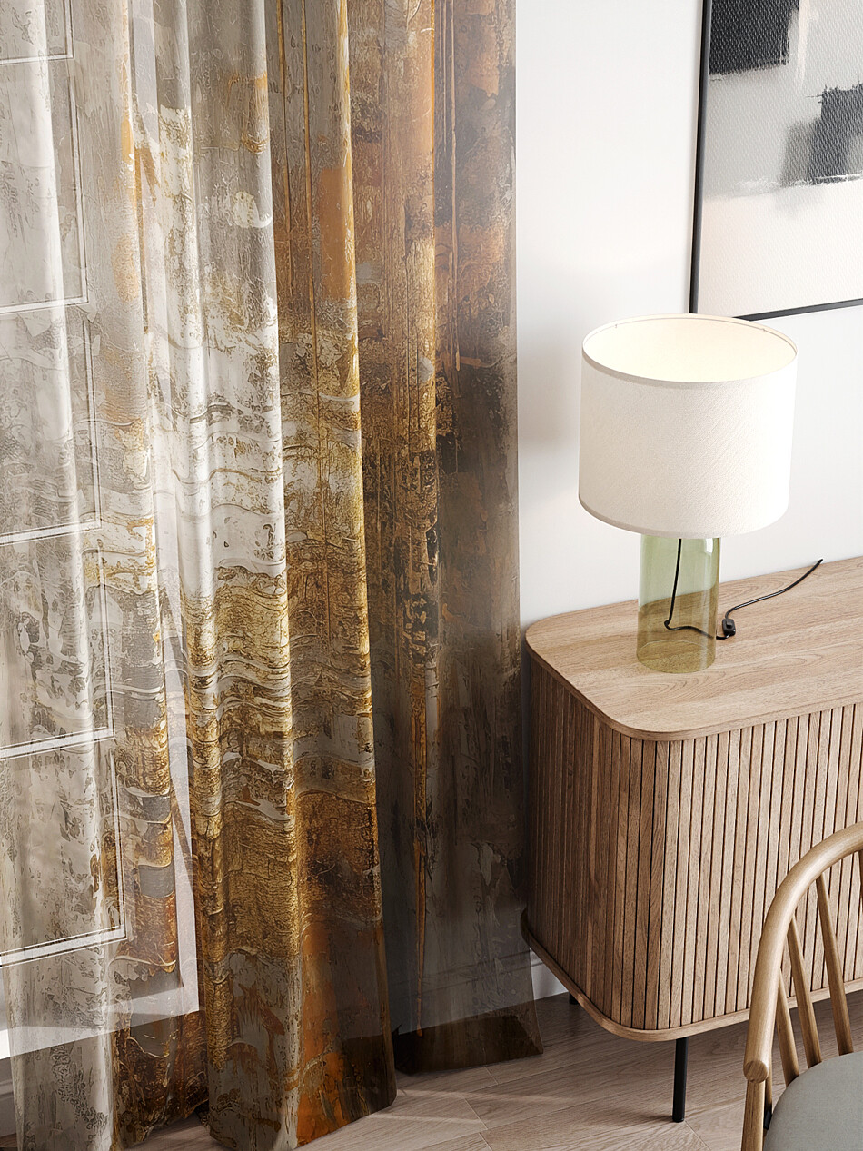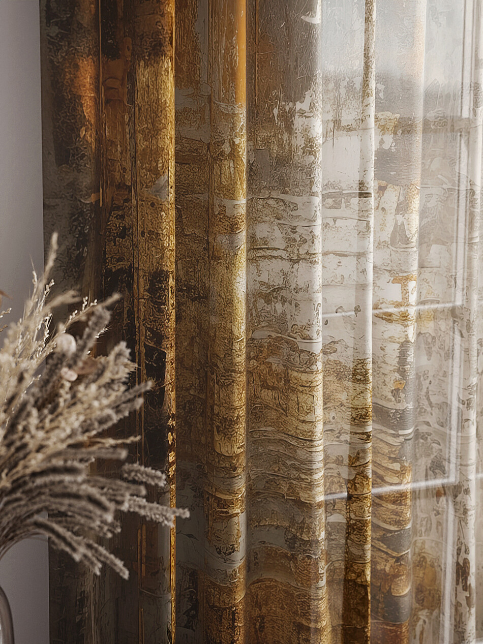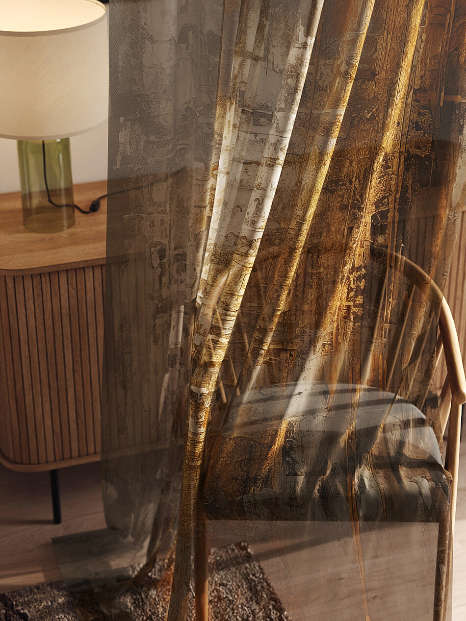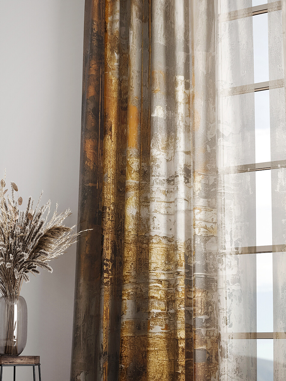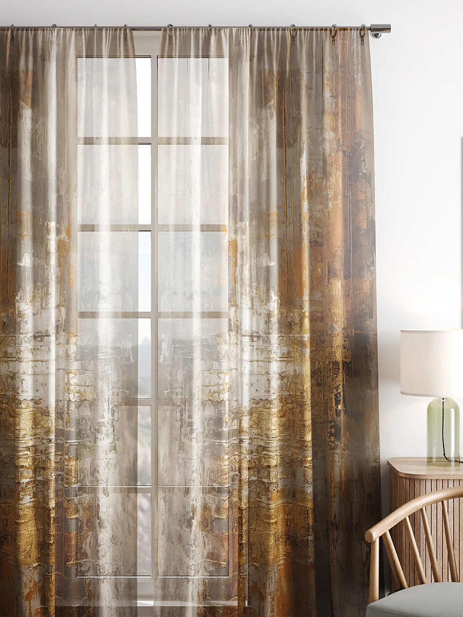 Шторы из тюля бежевого цвета с ажурным рисунком