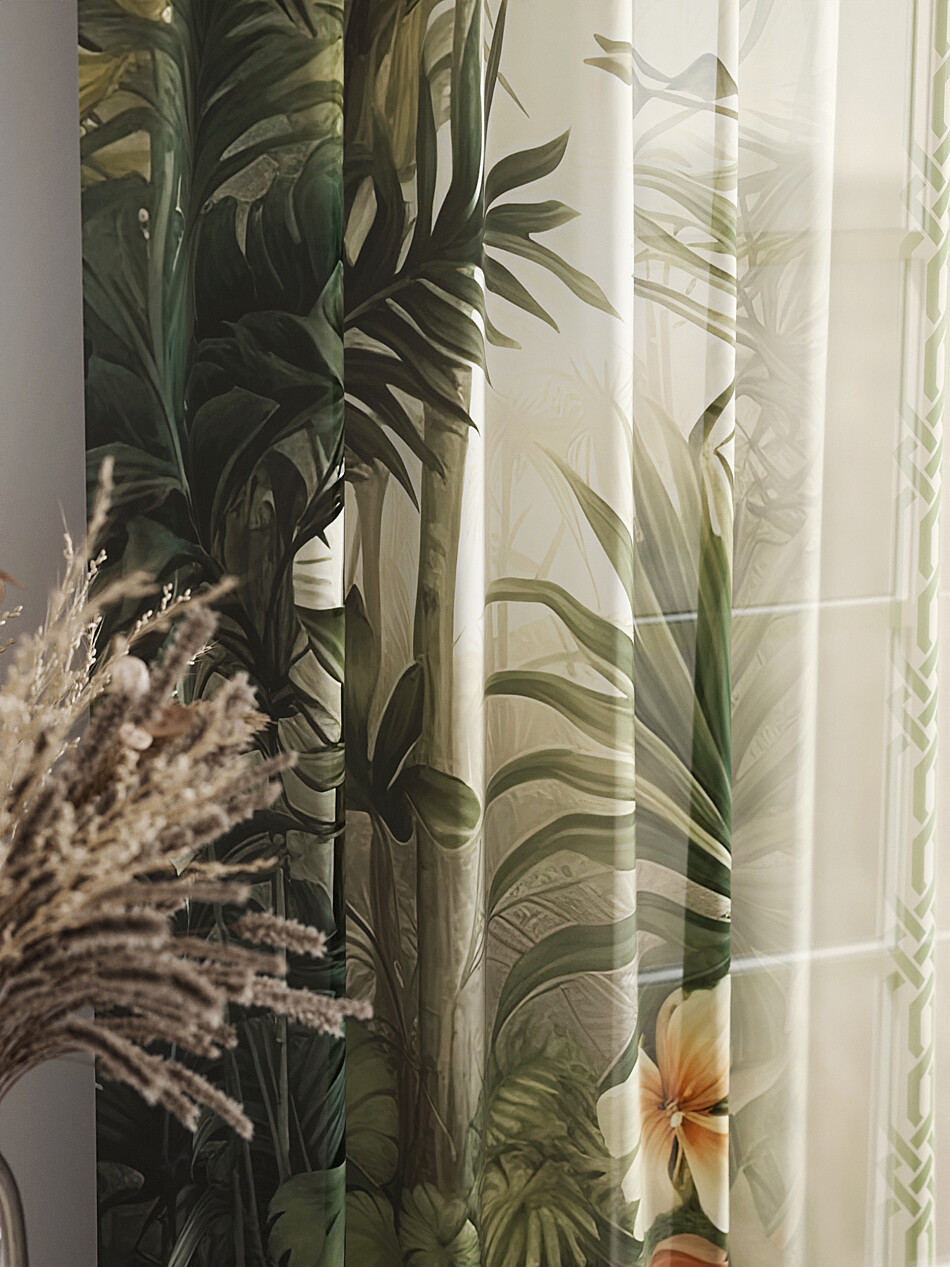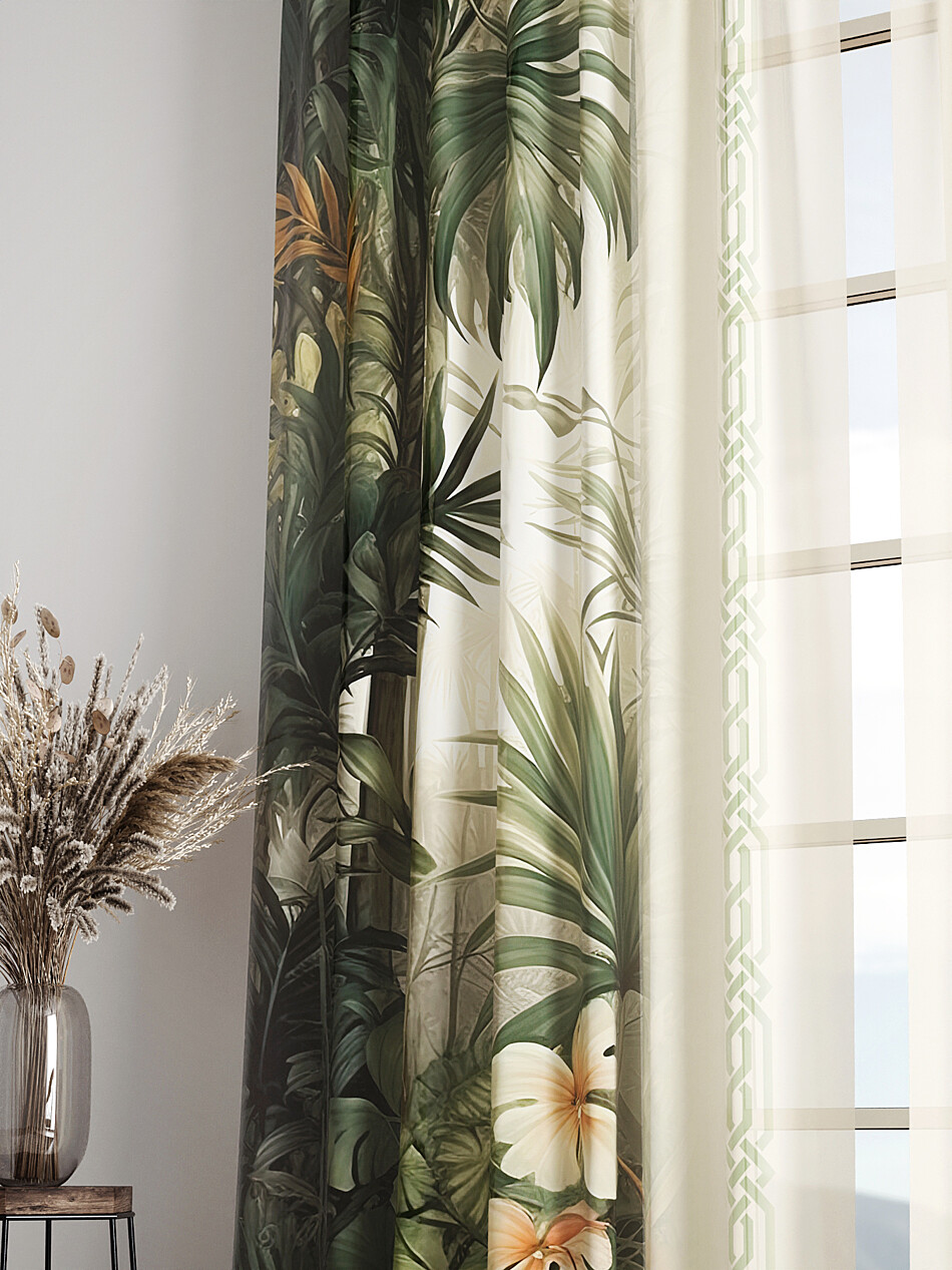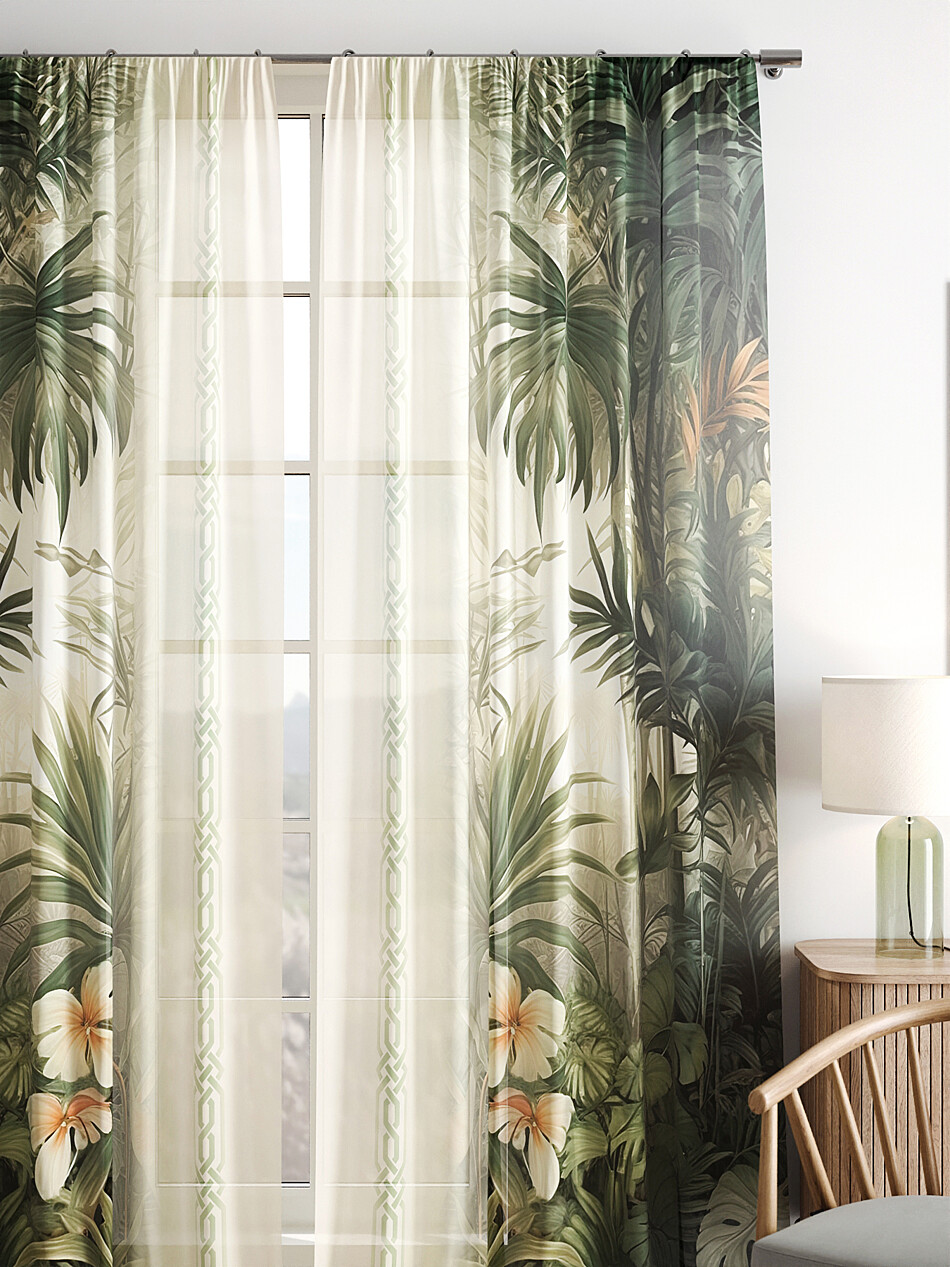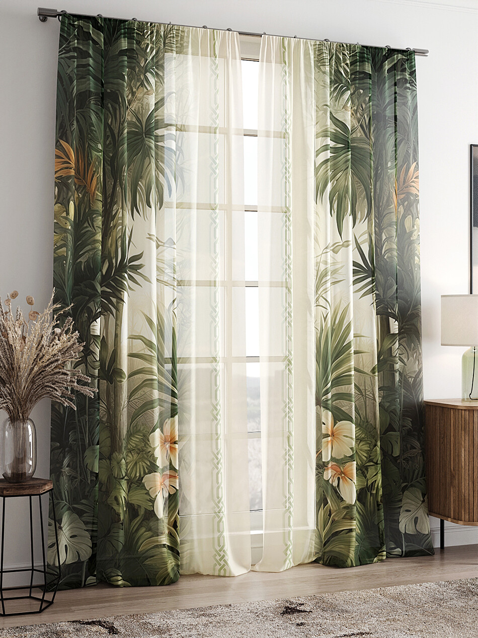 Шторы из тюля бежевого цвета с рисунком бабочки