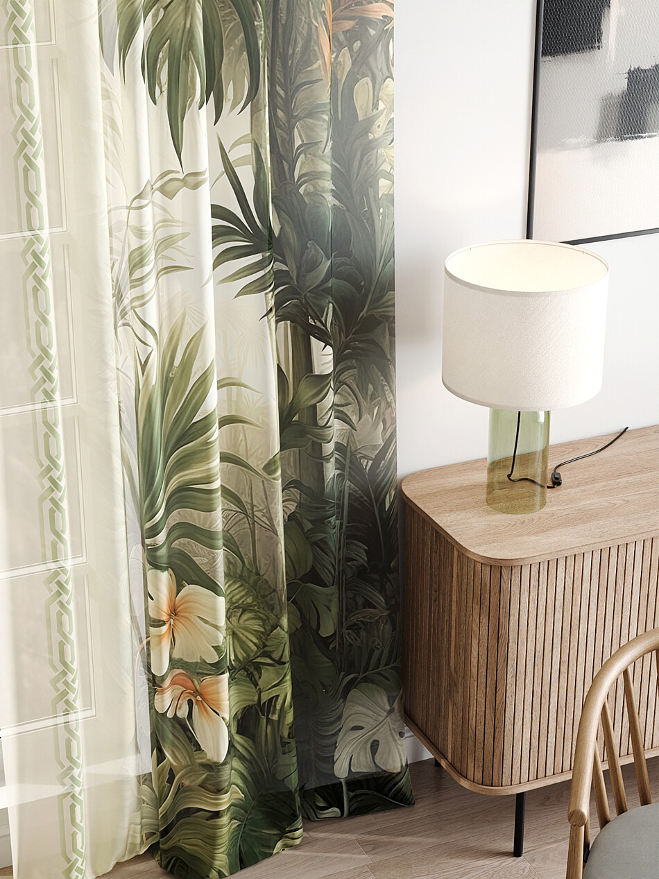 Шторы из тюля бежевого цвета с ажурным рисунком