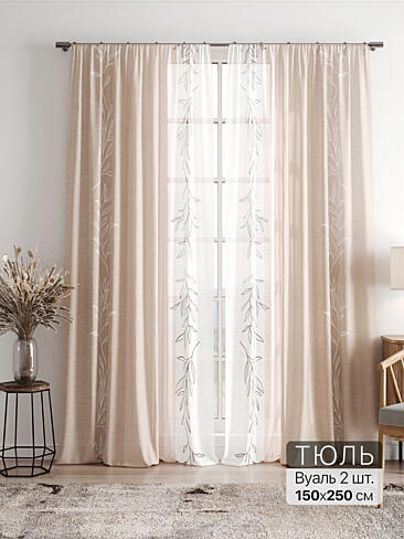 Шторы из тюля бежевого цвета с ажурным рисунком