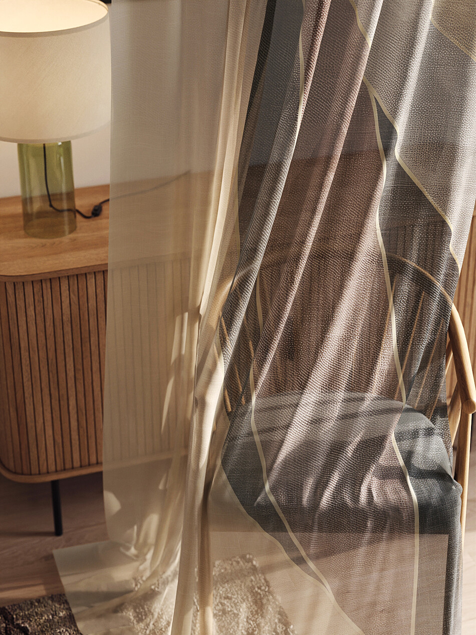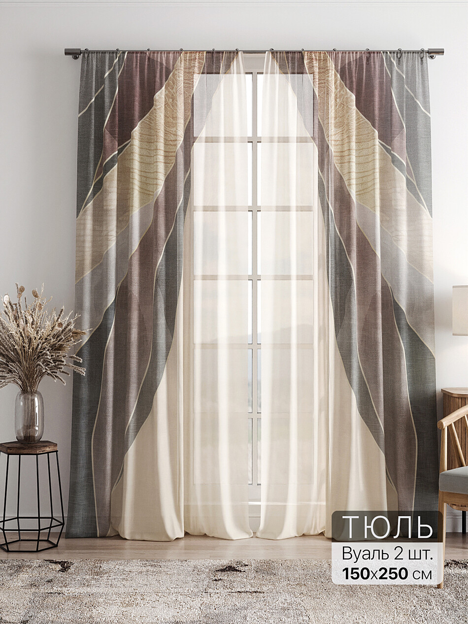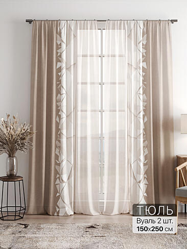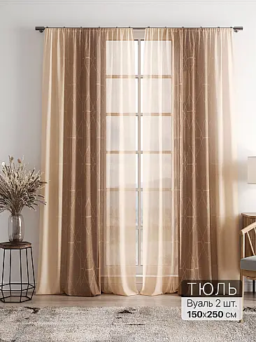 Шторы из тюля бежевого цвета с ажурным рисунком