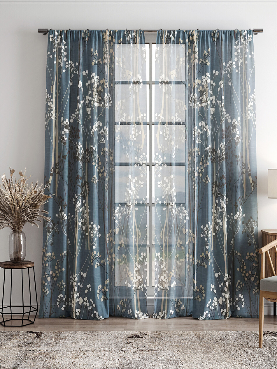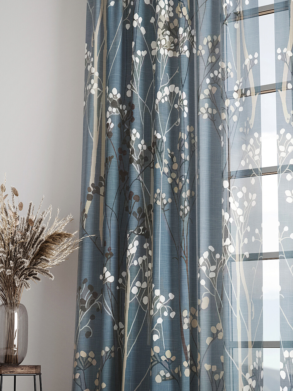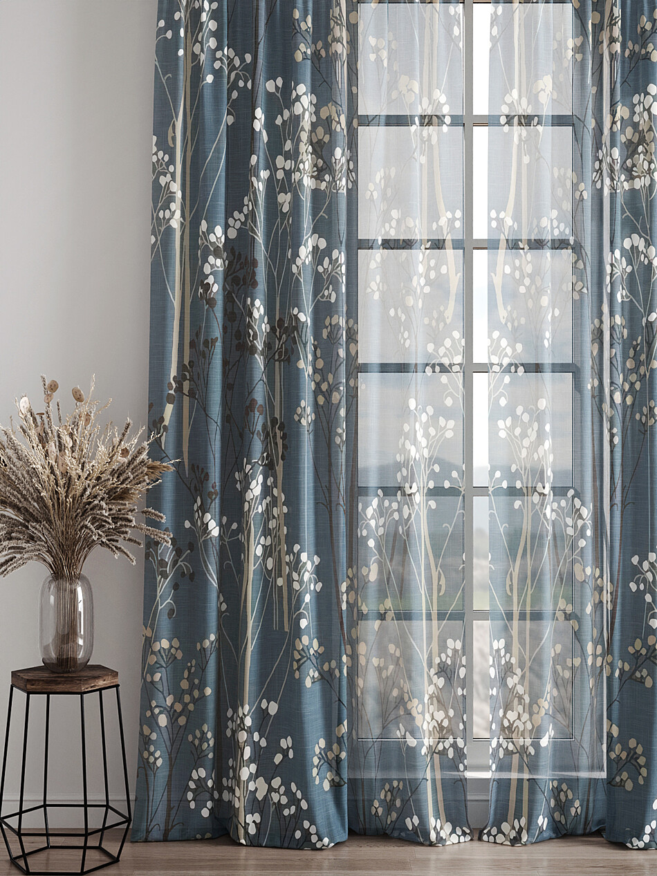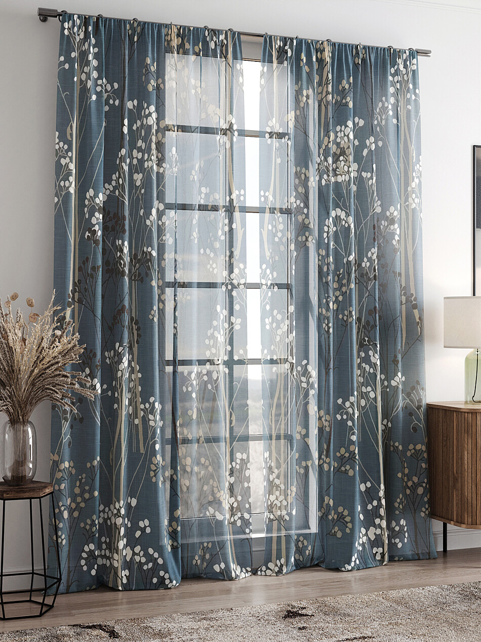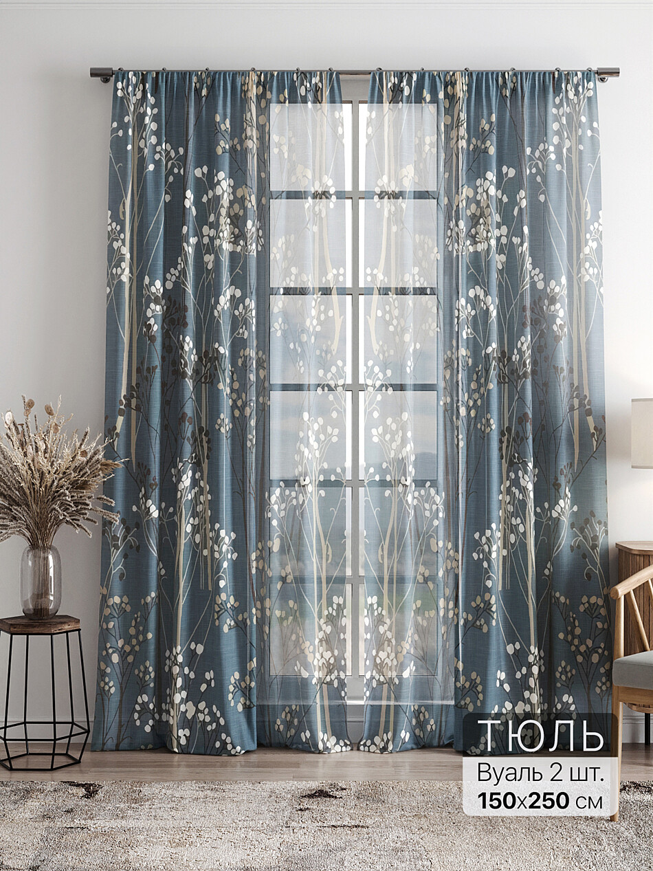 Шторы из тюля бежевого цвета с рисунком бабочки