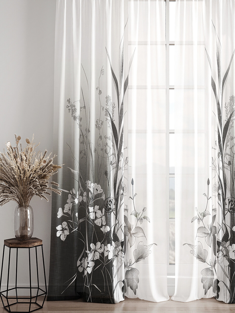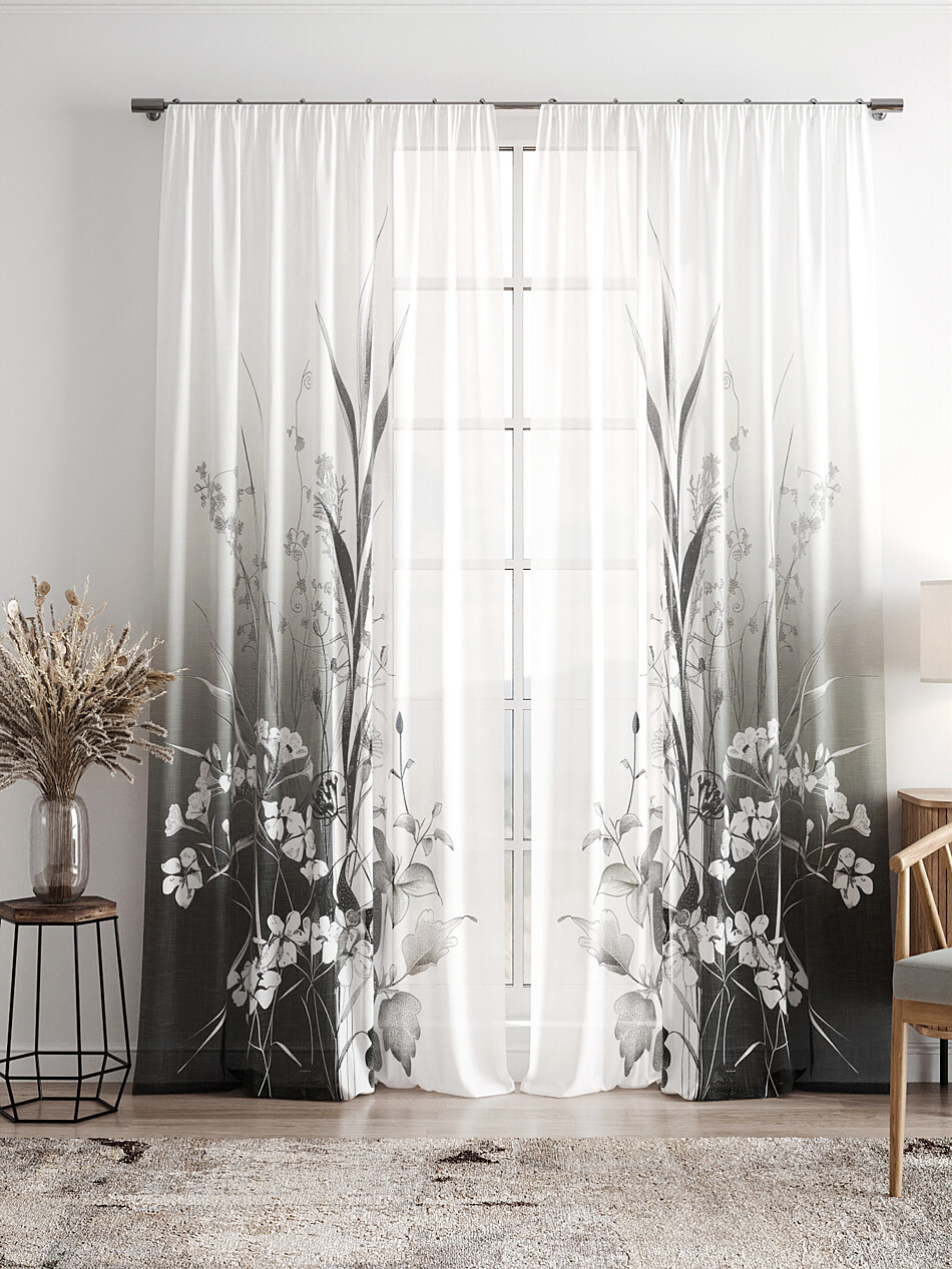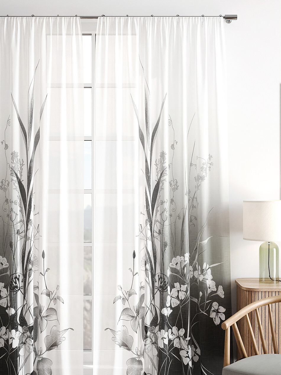 Шторы из тюля бежевого цвета с рисунком бабочки