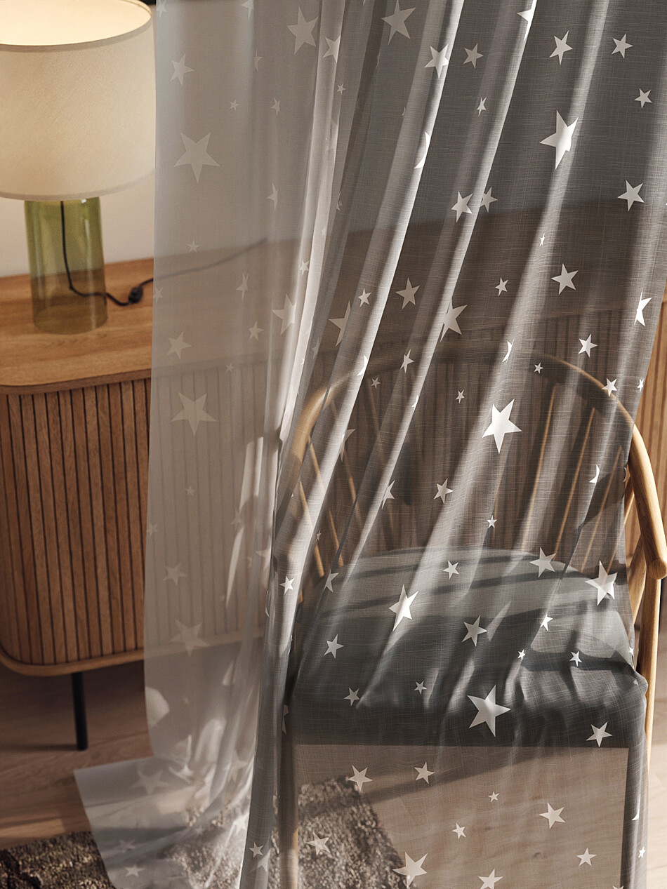 Шторы из тюля бежевого цвета с рисунком бабочки