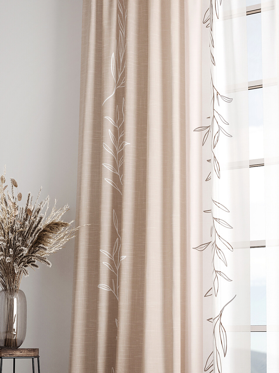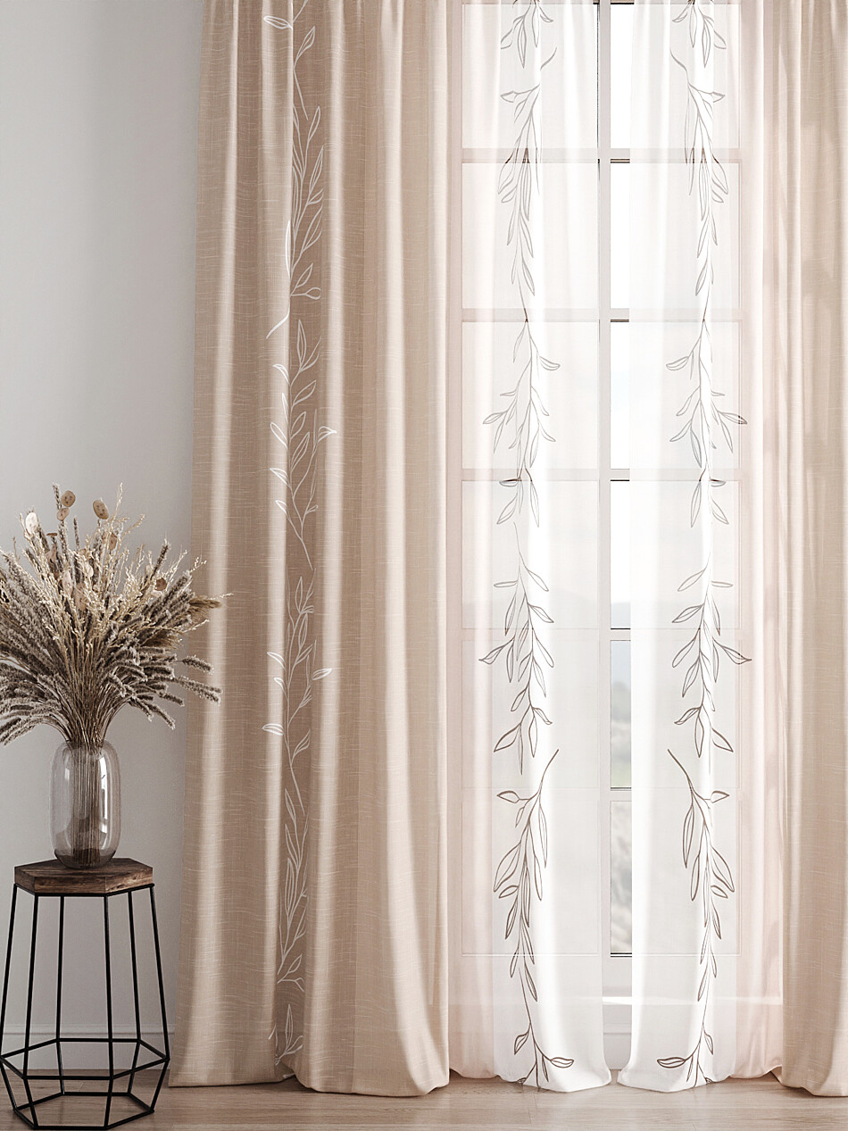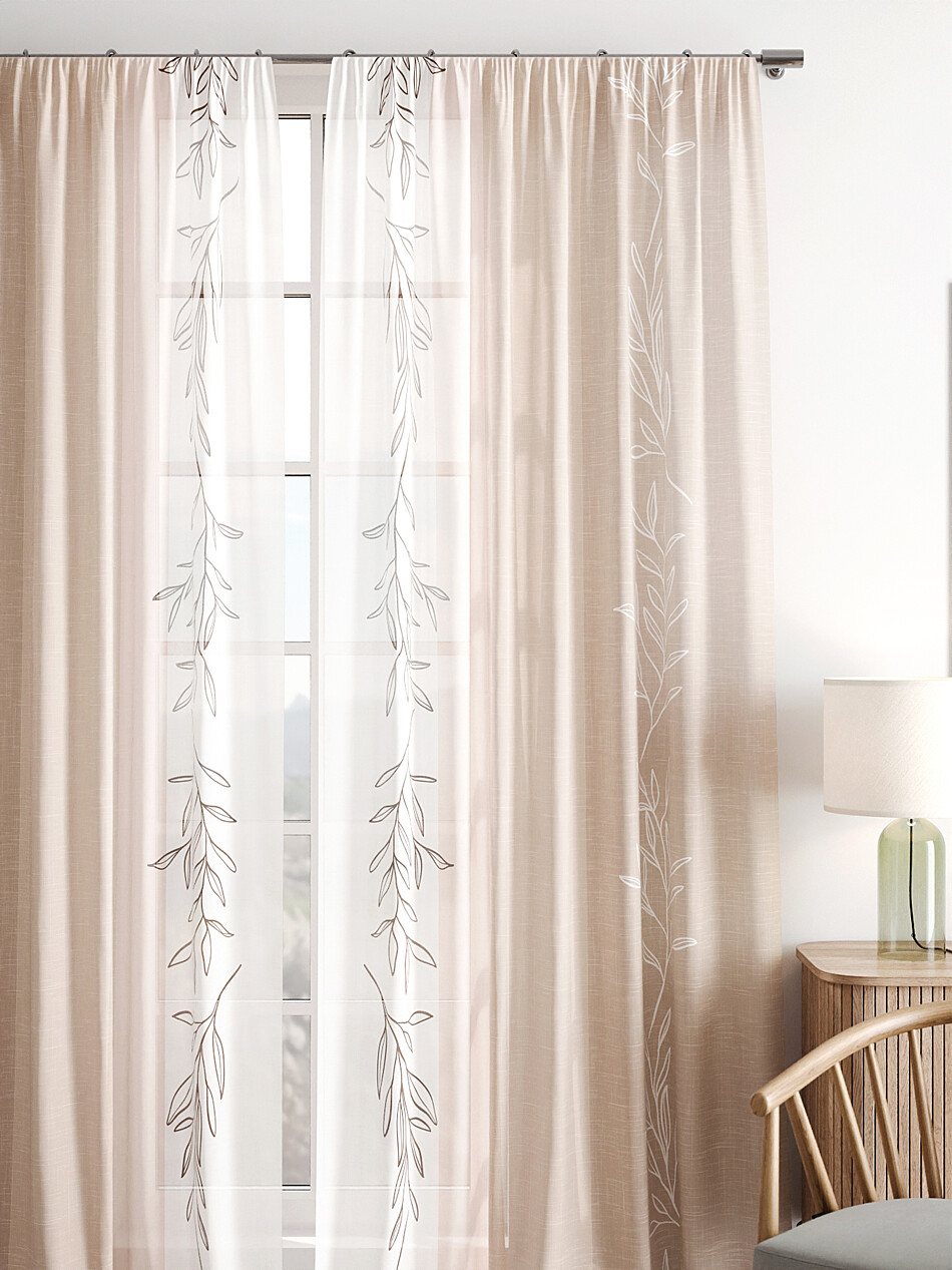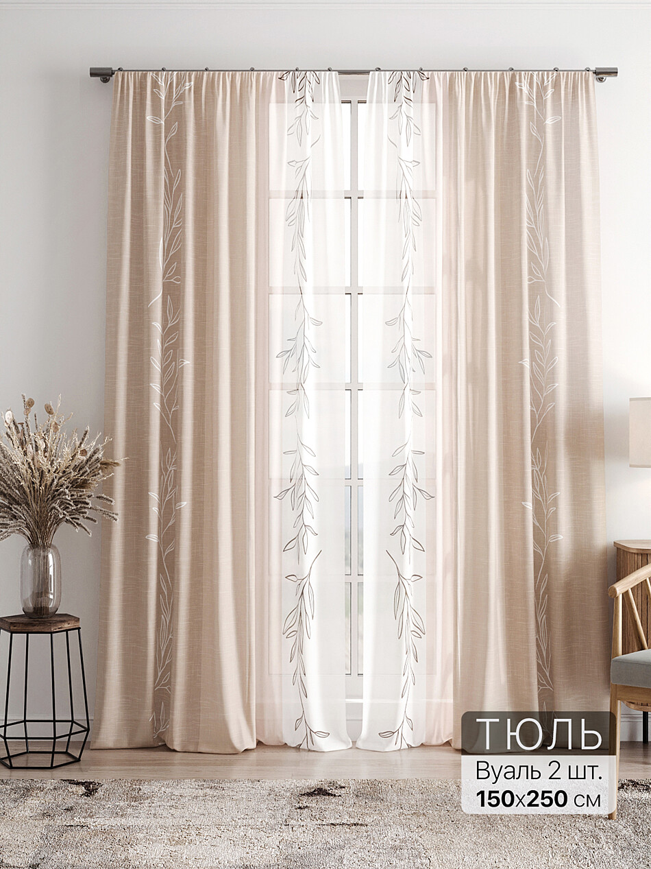 Шторы из тюля бежевого цвета с ажурным рисунком