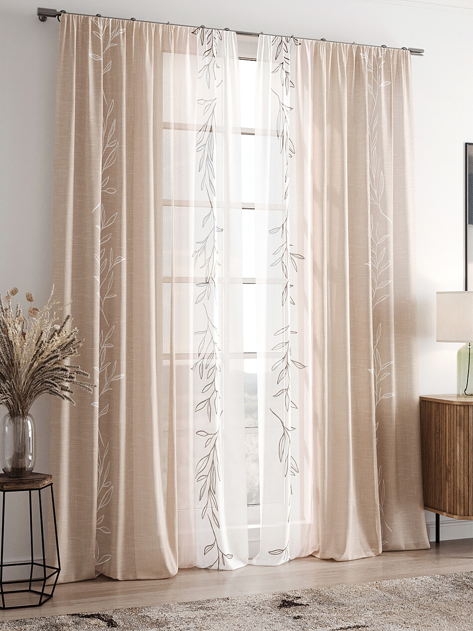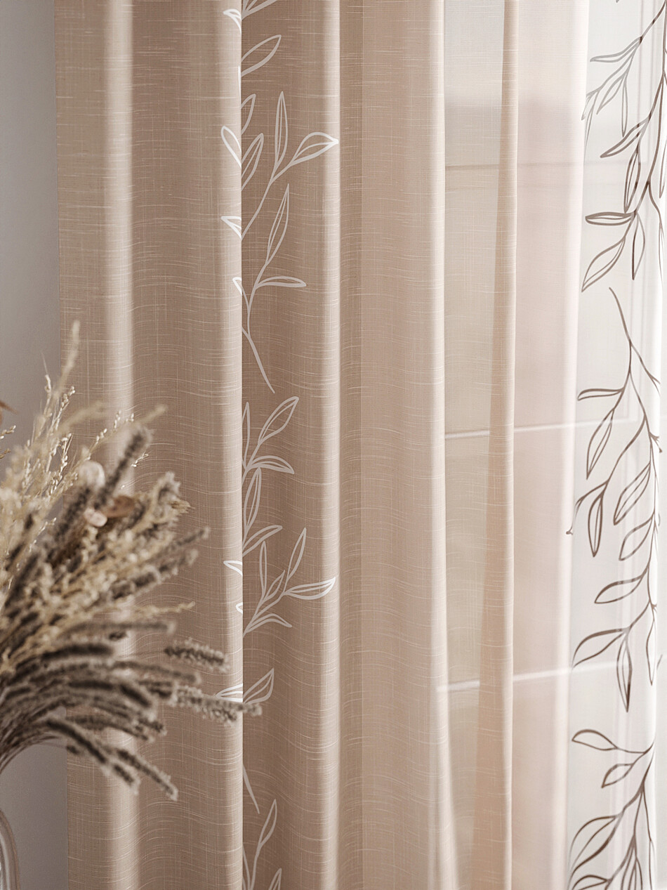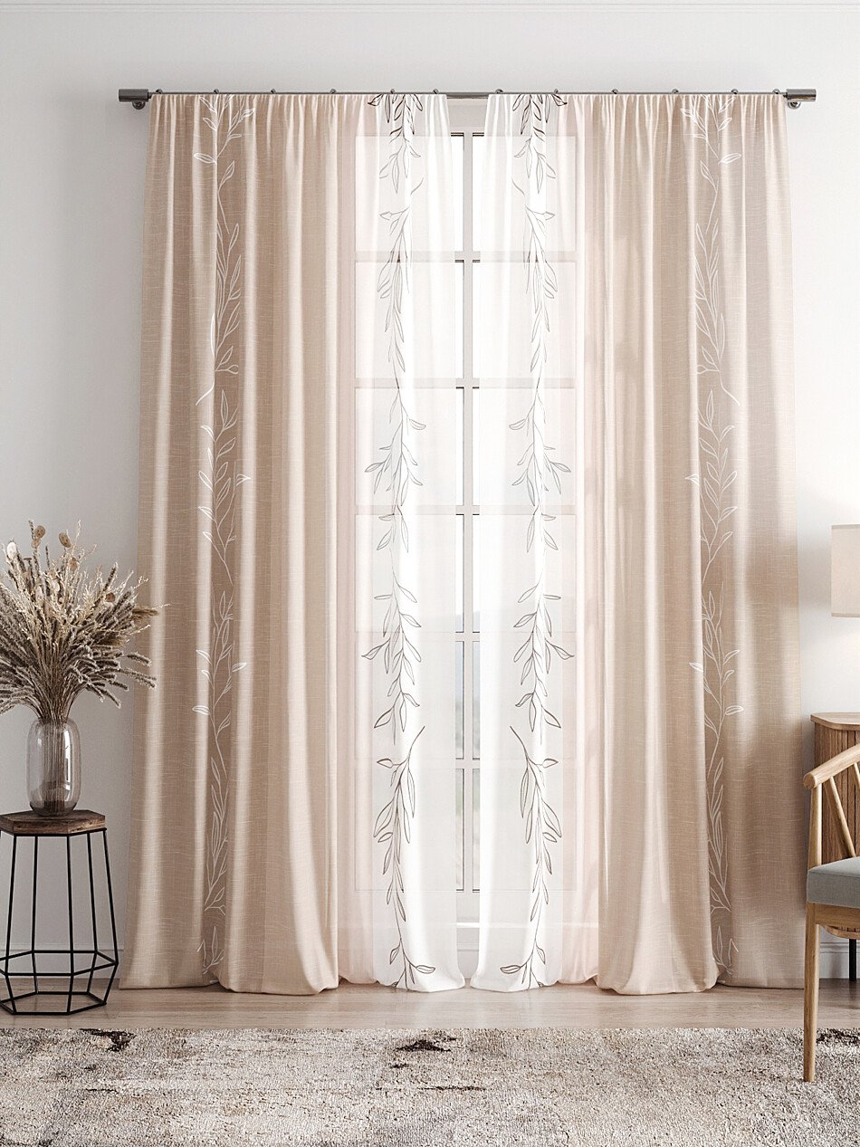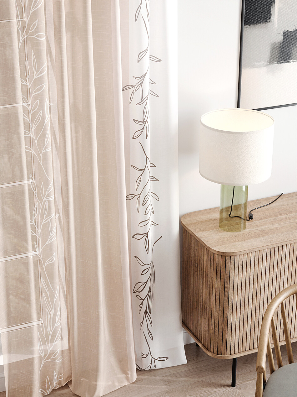 Шторы из тюля бежевого цвета с ажурным рисунком