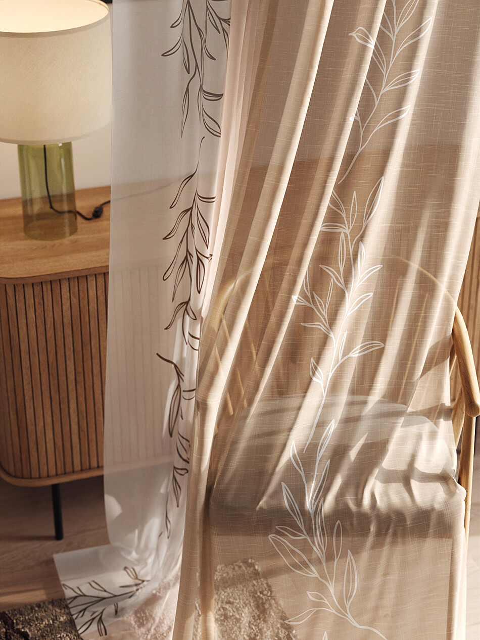 Шторы из тюля бежевого цвета с рисунком бабочки