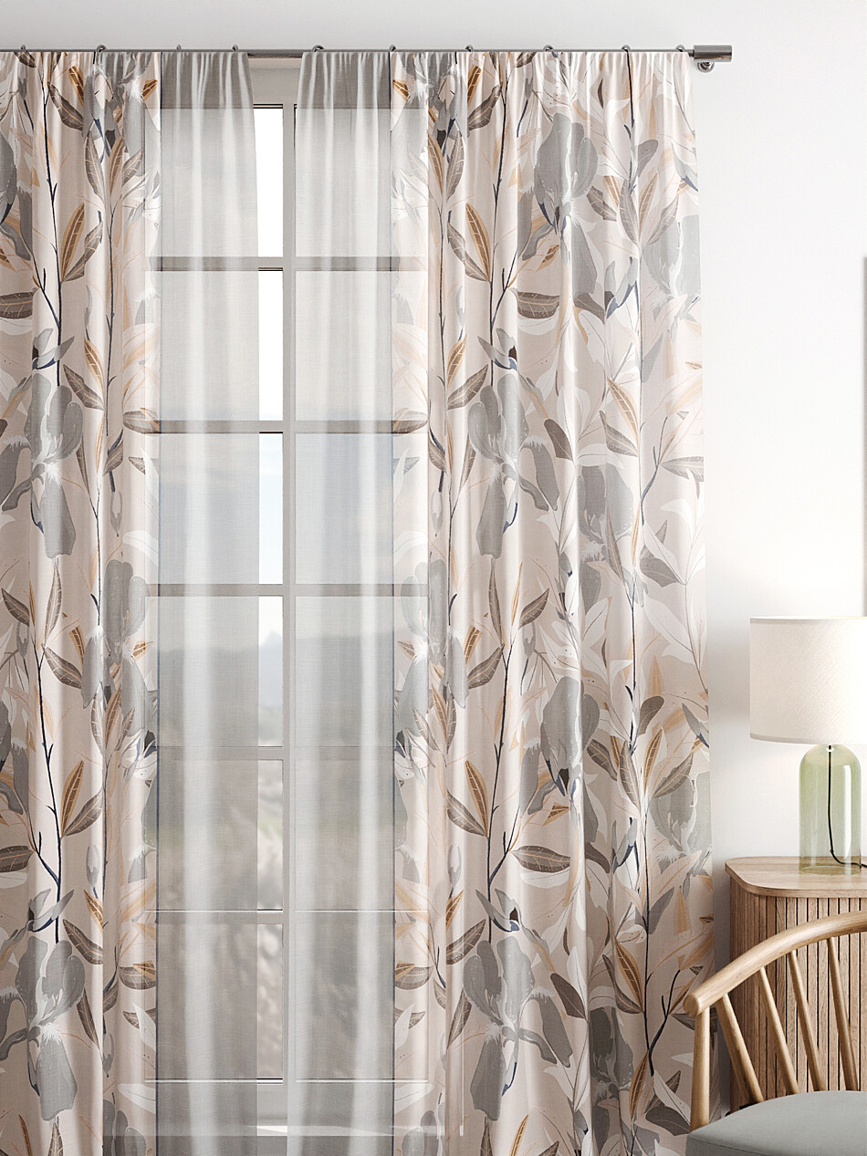 Шторы из тюля бежевого цвета с крупным рисунком