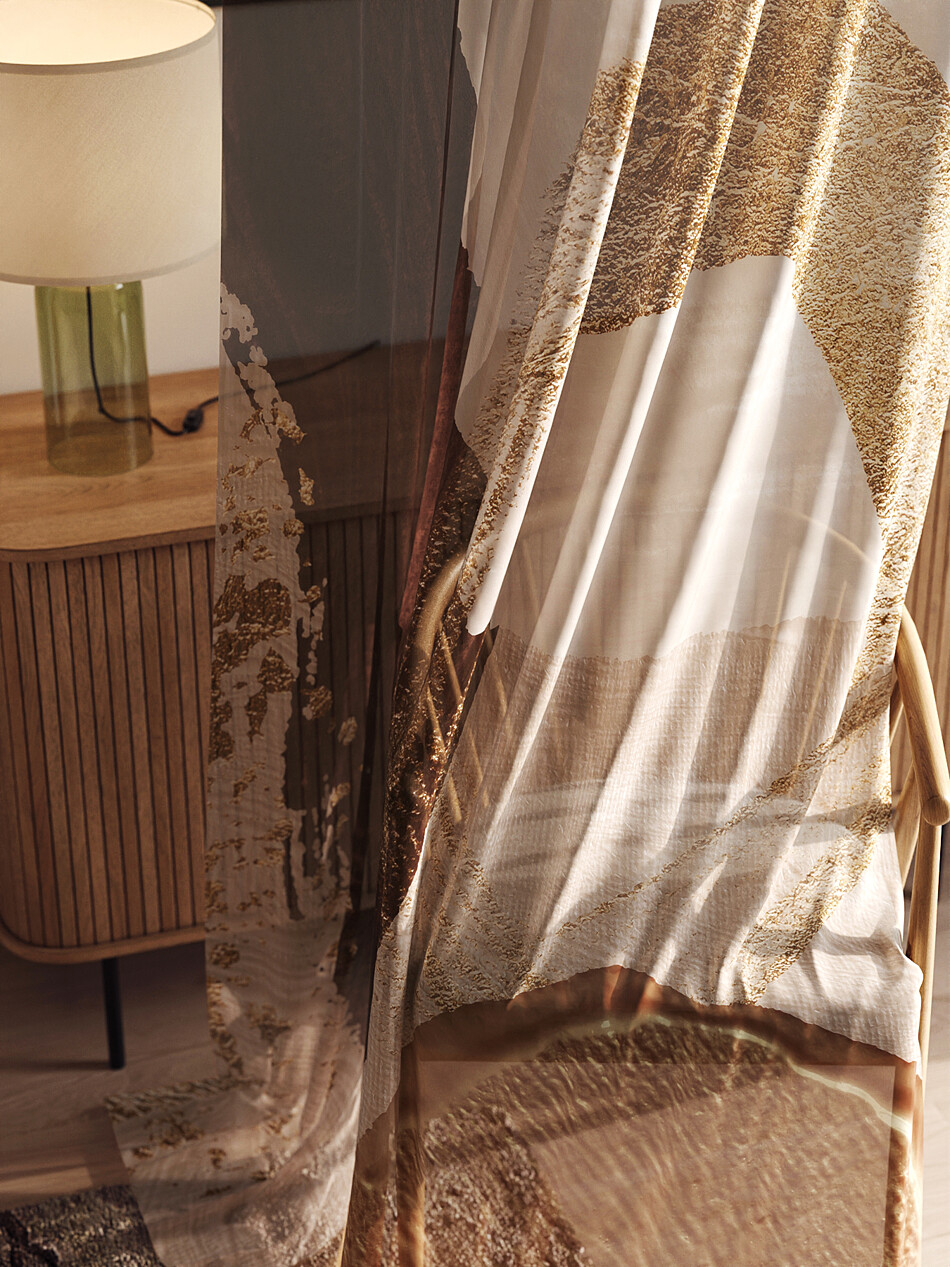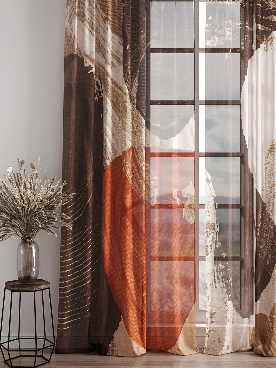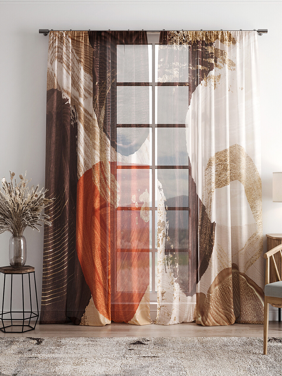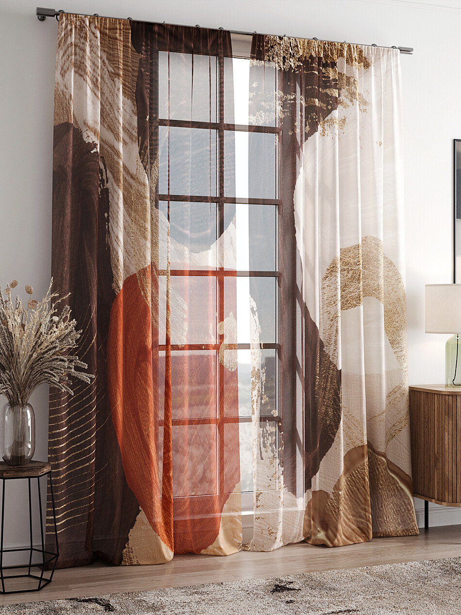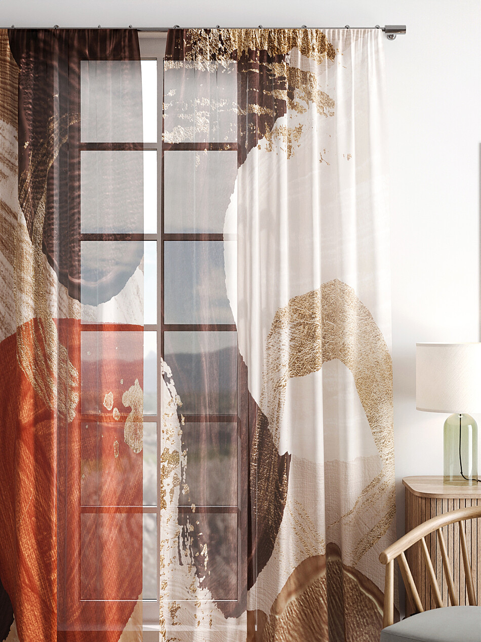 Шторы из тюля бежевого цвета с рисунком омбре