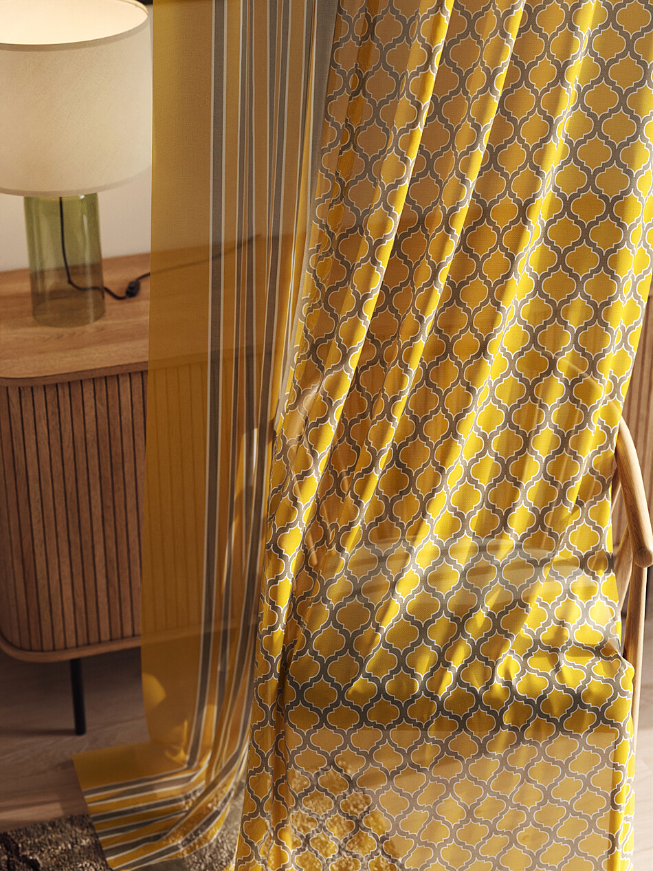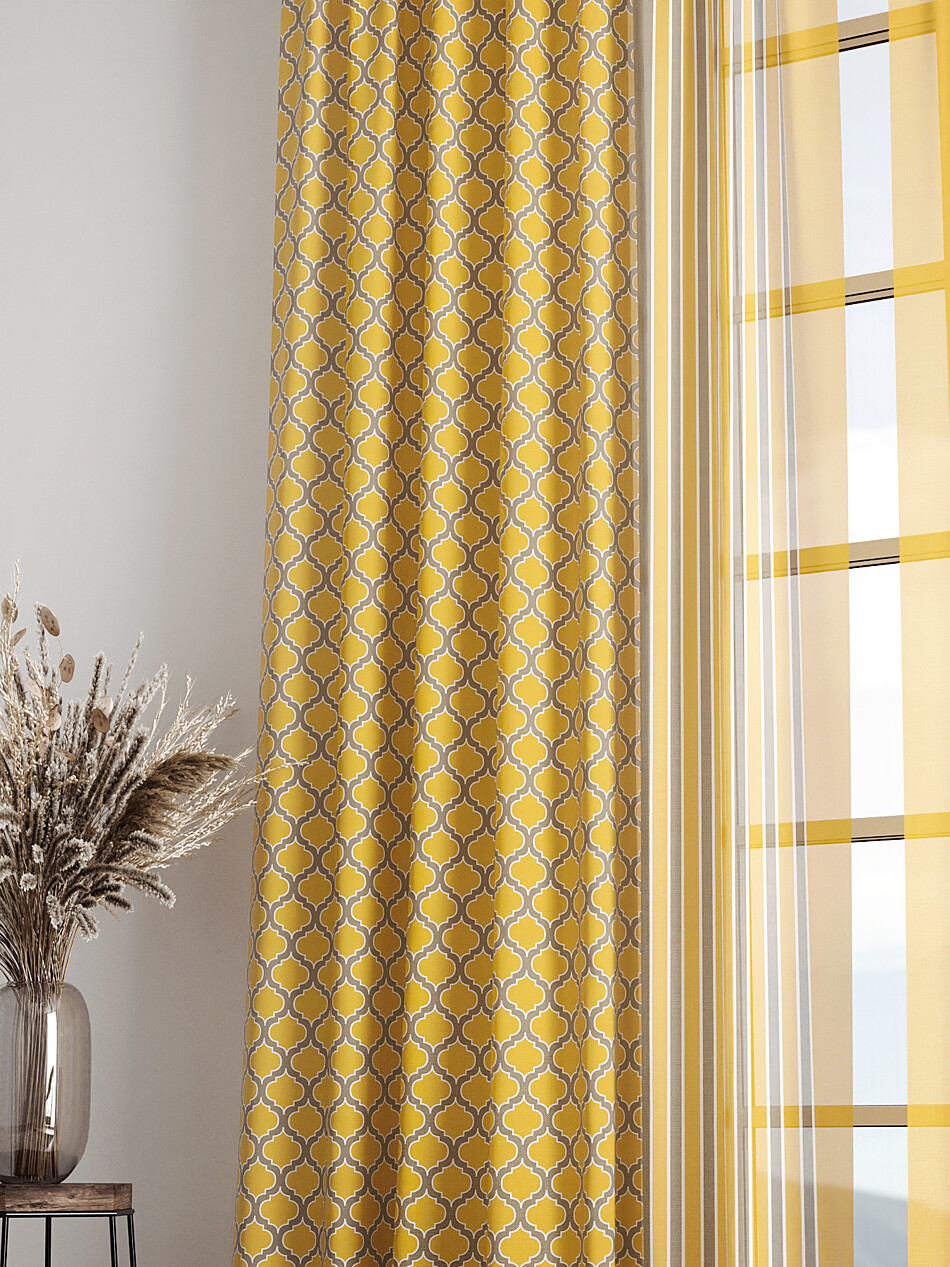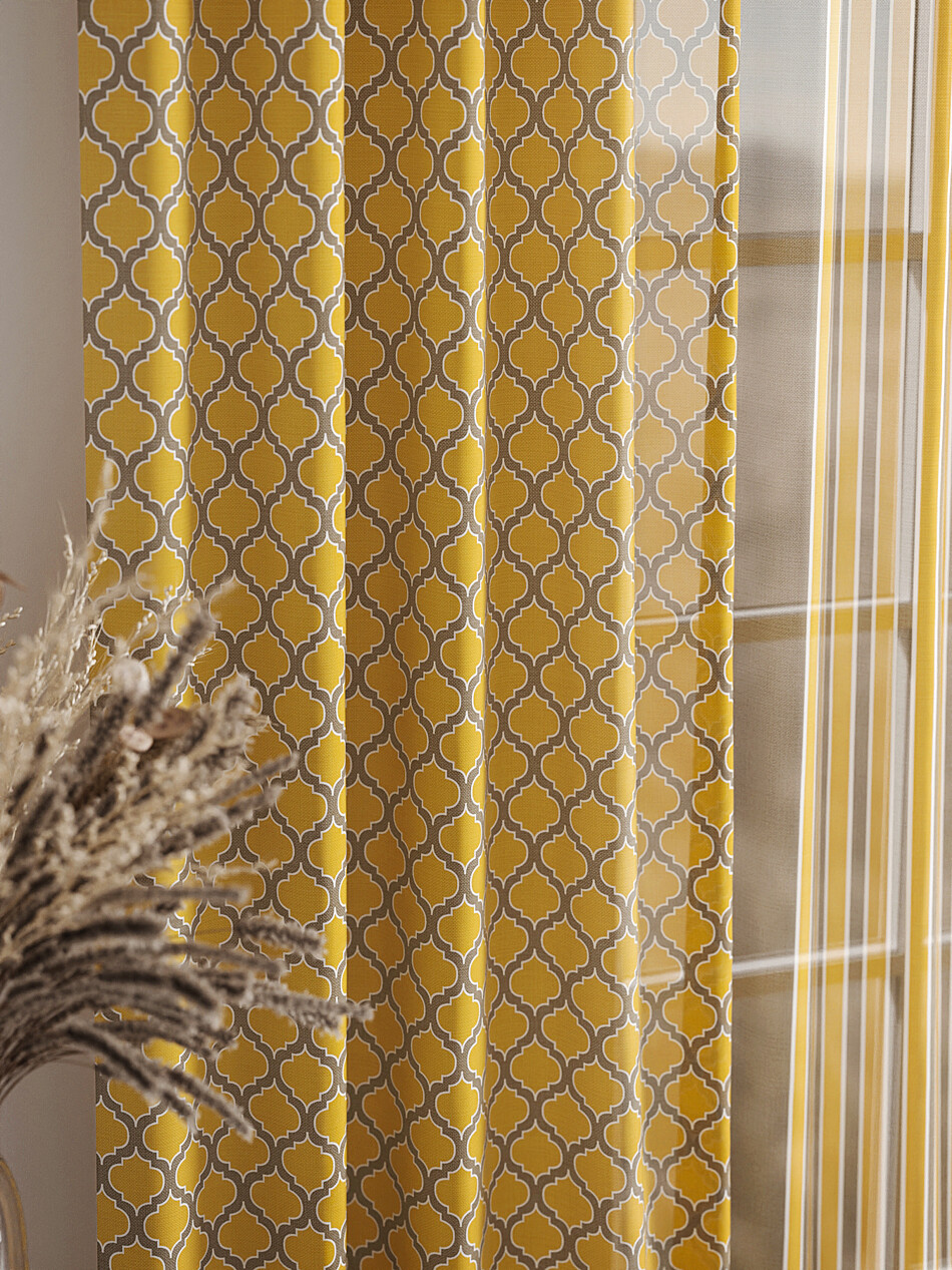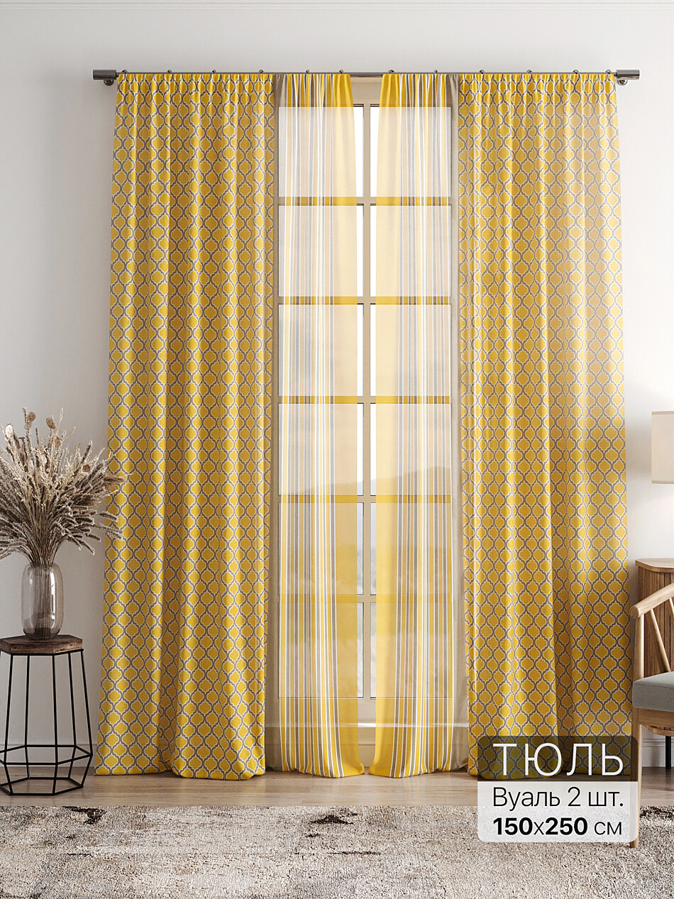 Шторы из тюля бежевого цвета с ажурным рисунком