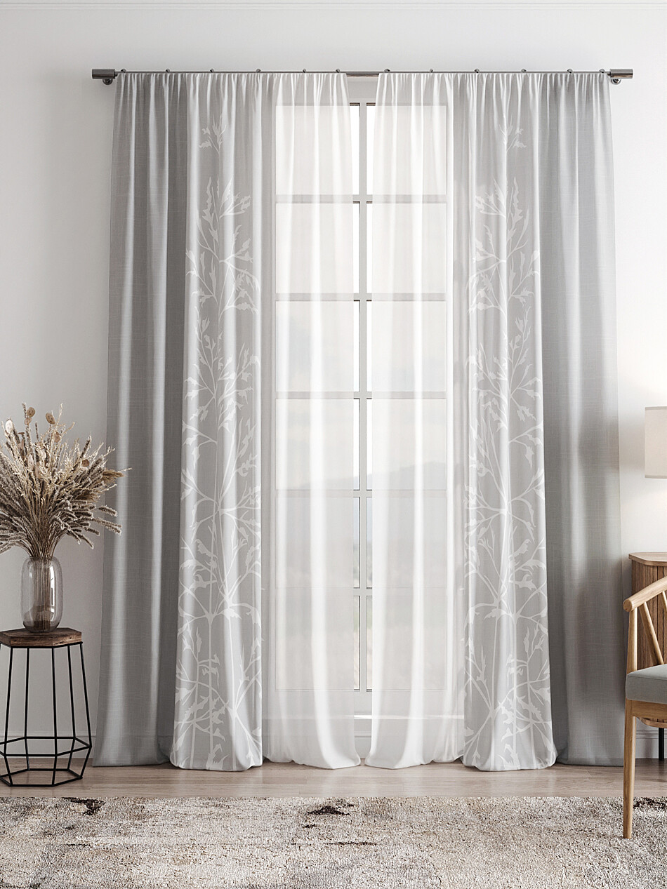 Шторы из тюля с рисунком деревьев
