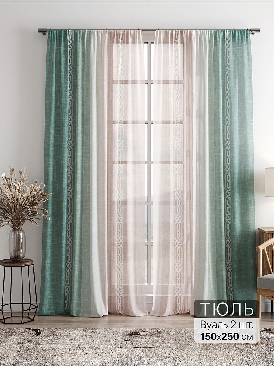 Шторы из тюля бежевого цвета с ажурным рисунком
