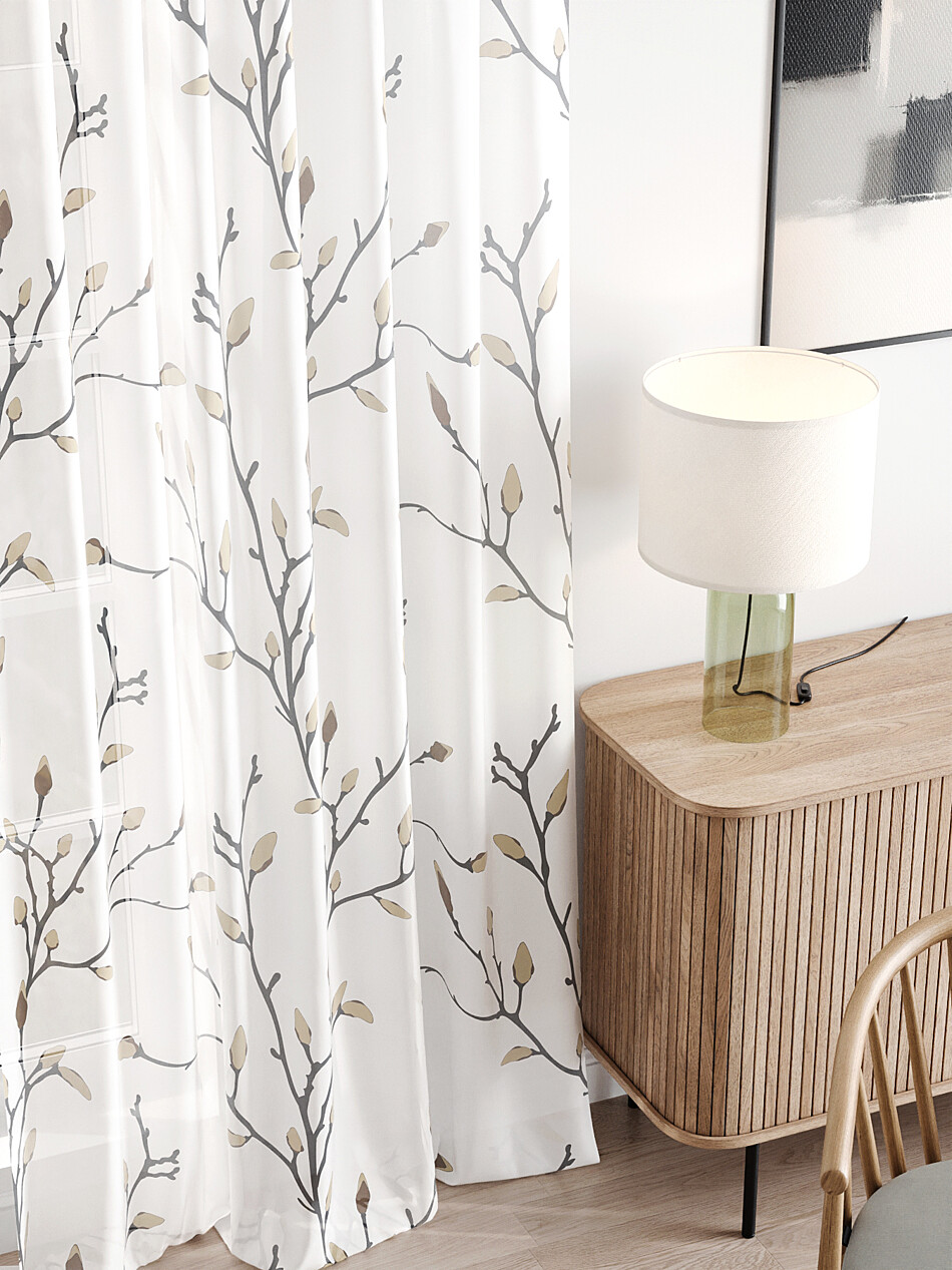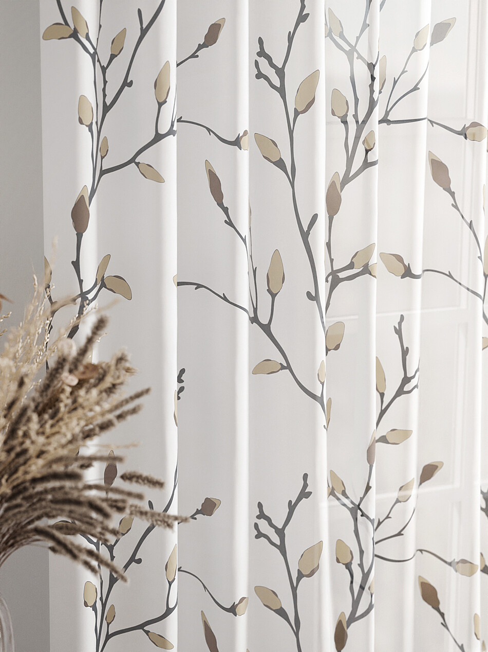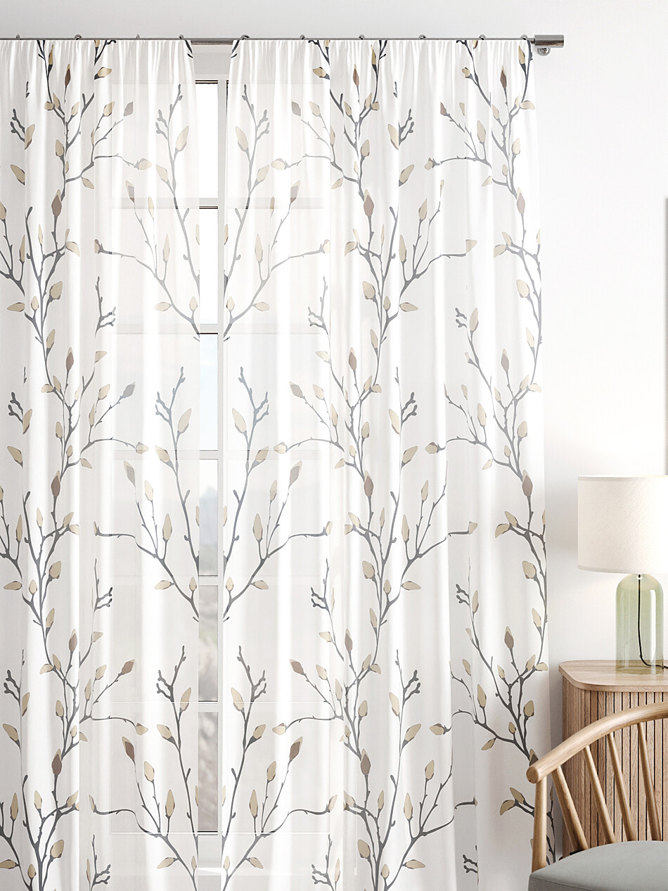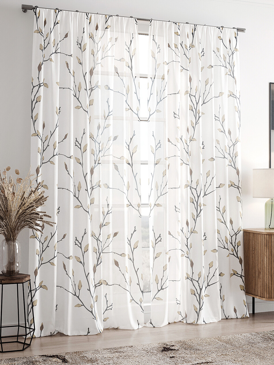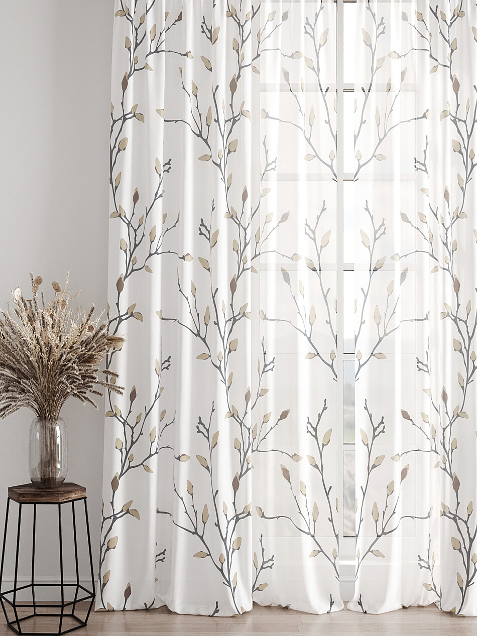 Шторы из тюля бежевого цвета с рисунком бабочки