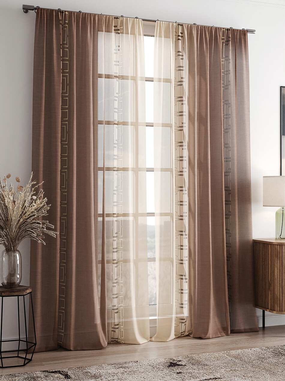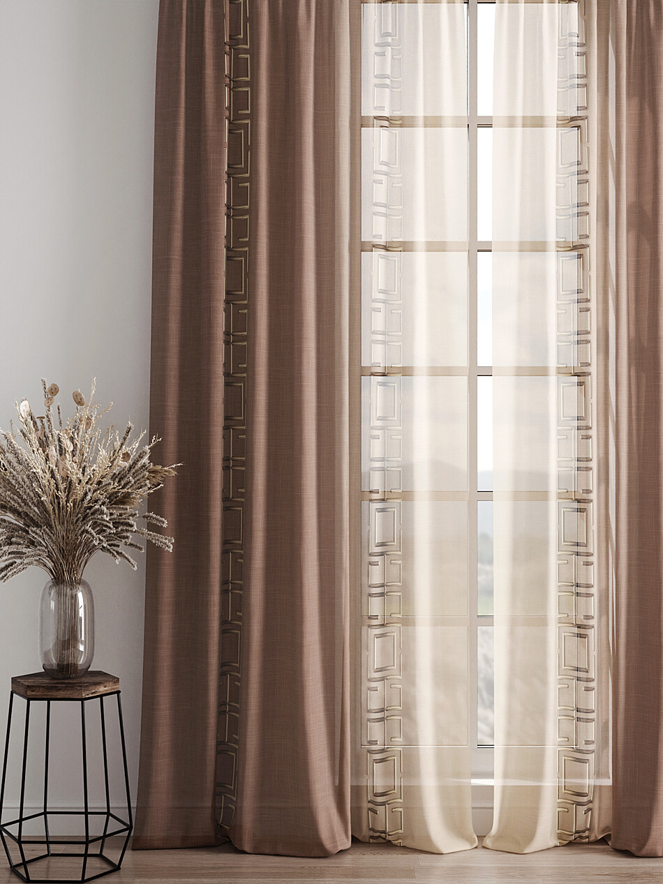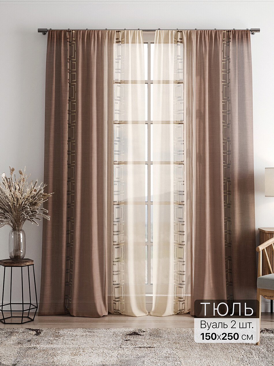 Шторы из тюля бежевого цвета с ажурным рисунком