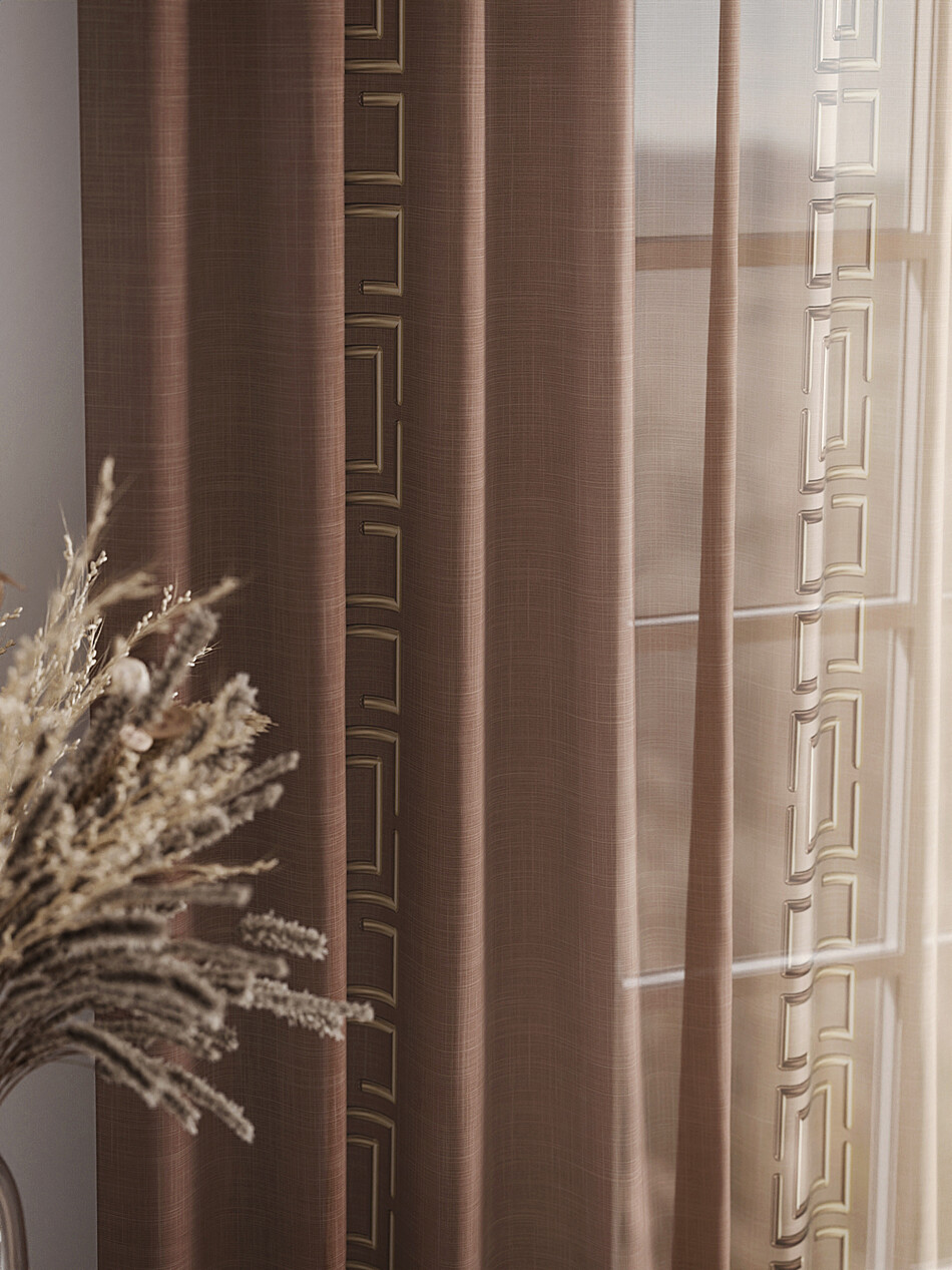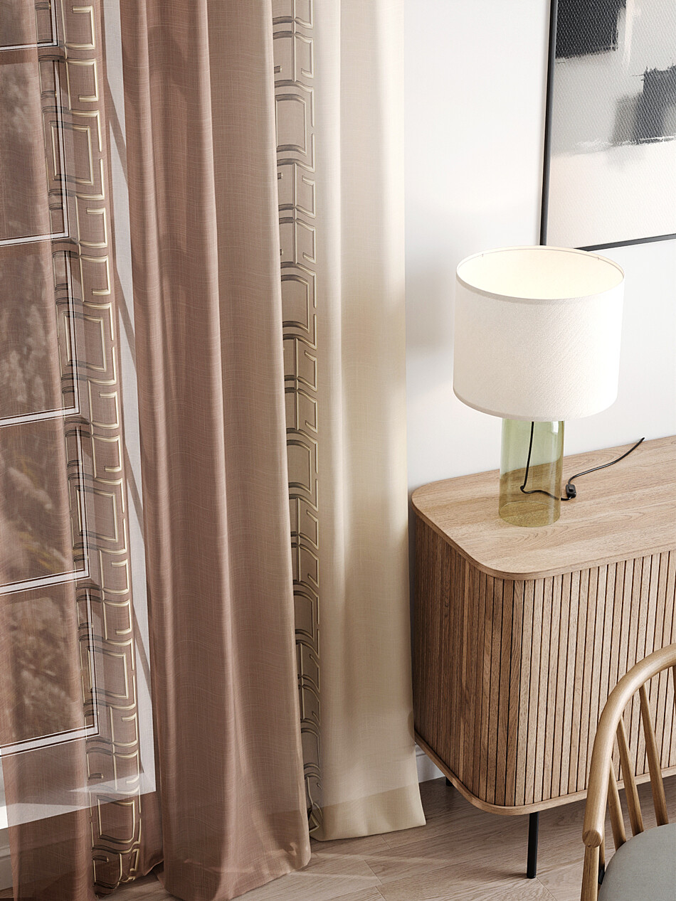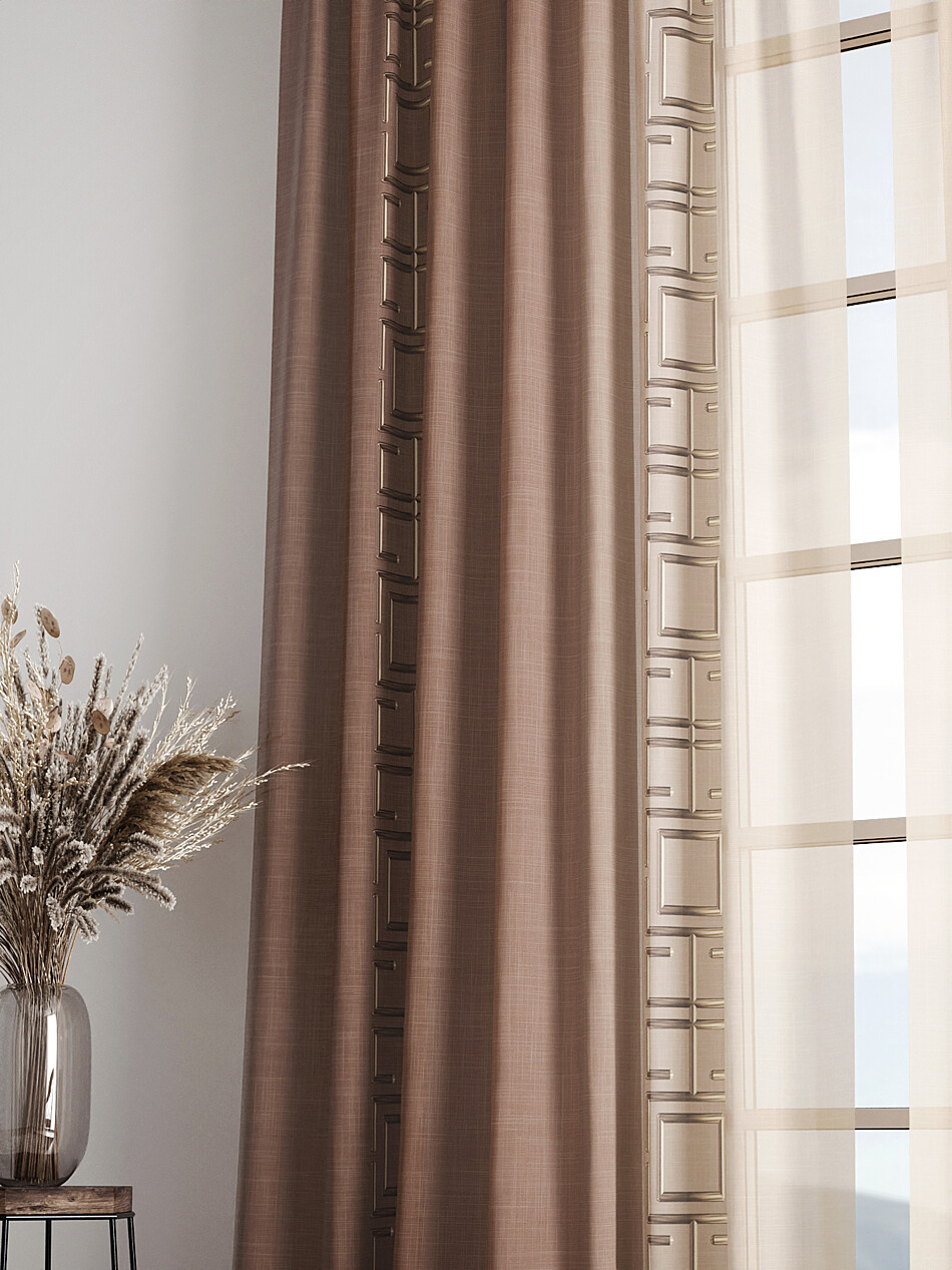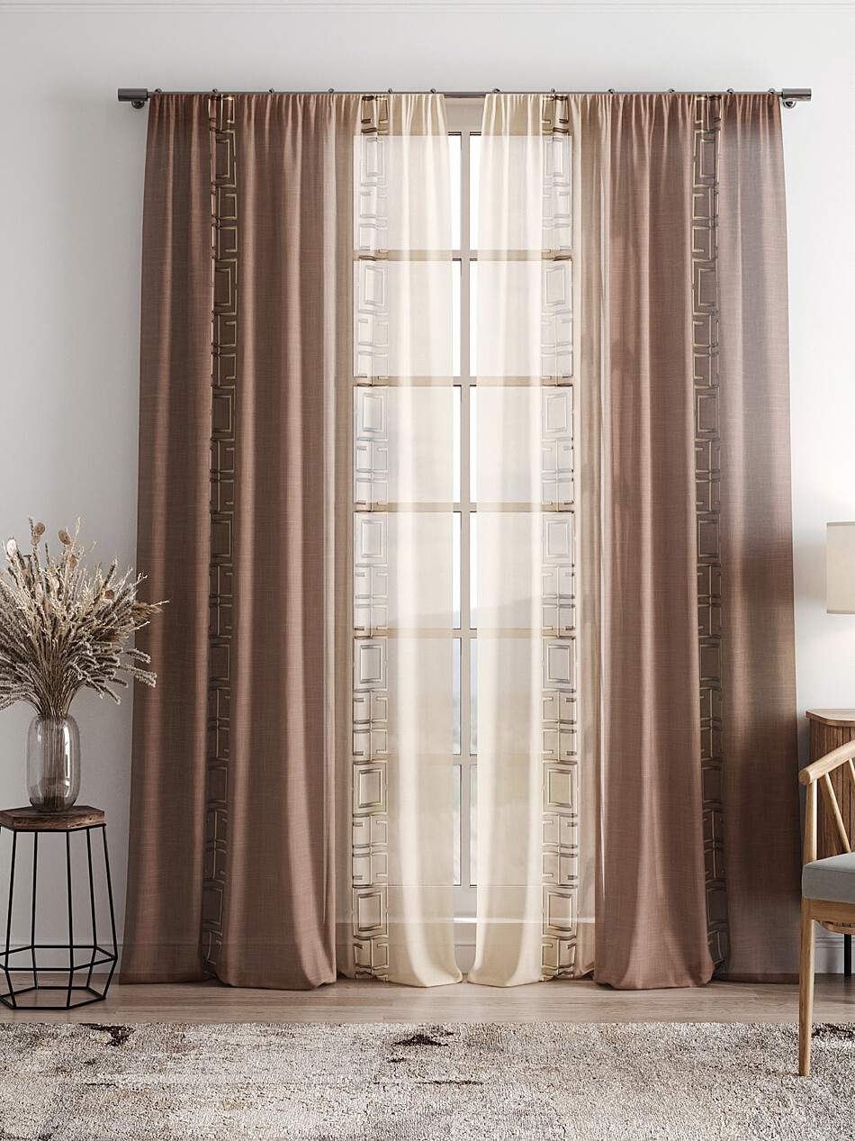 Шторы из тюля бежевого цвета с ажурным рисунком