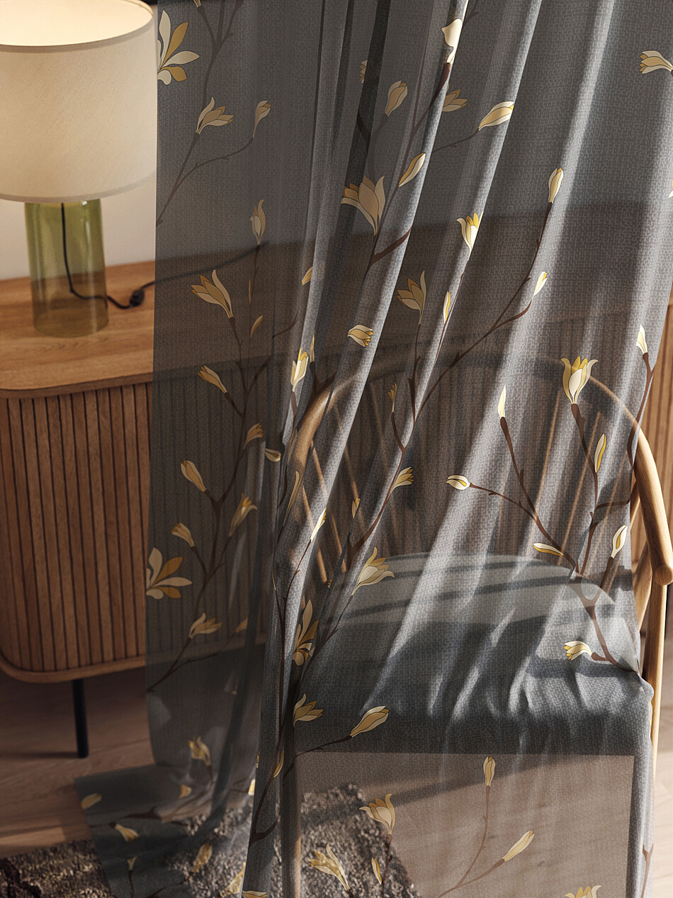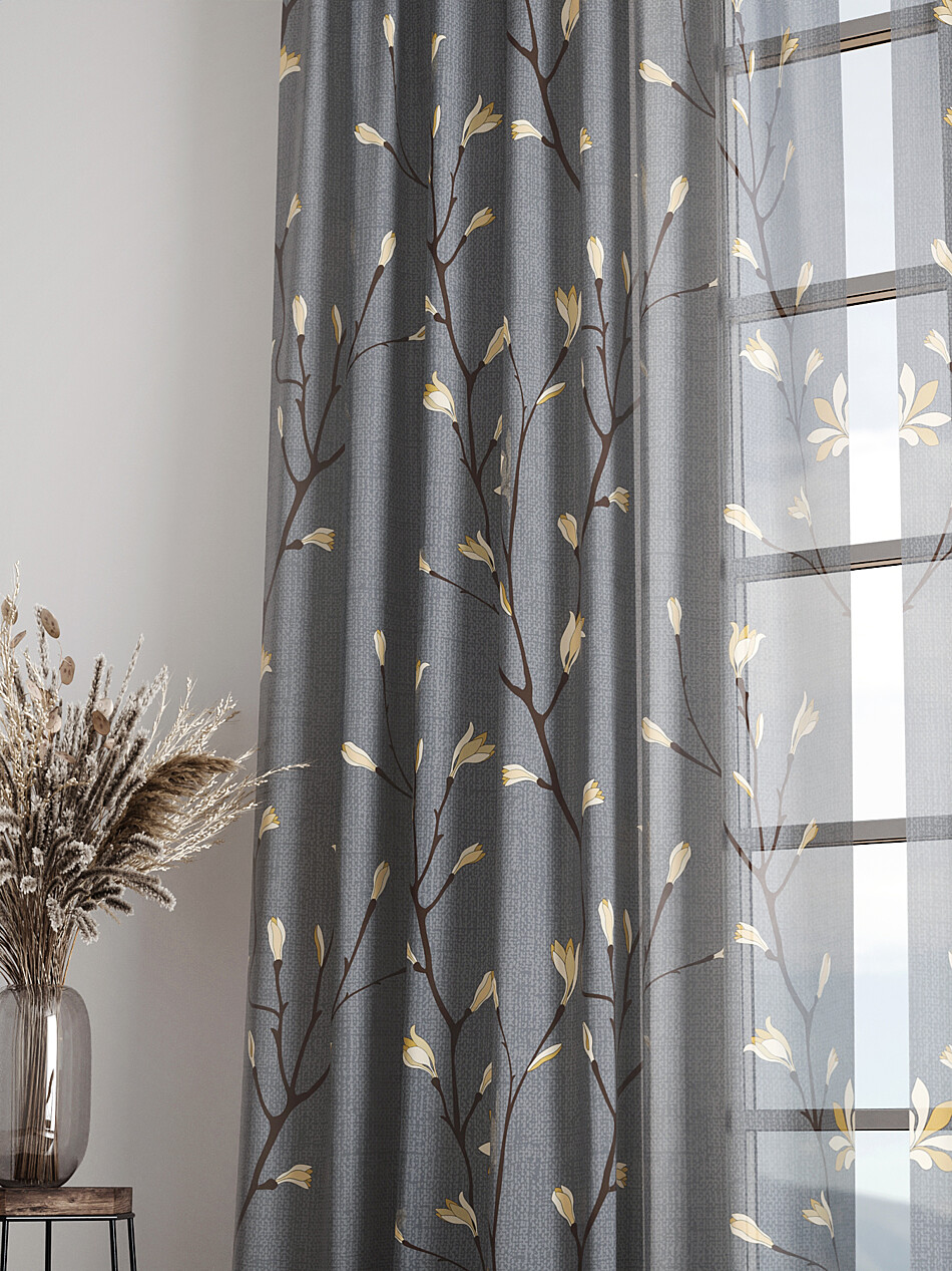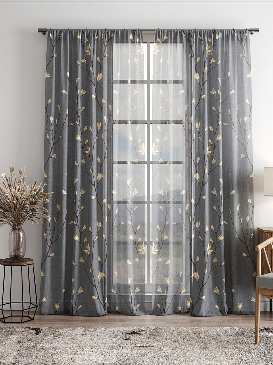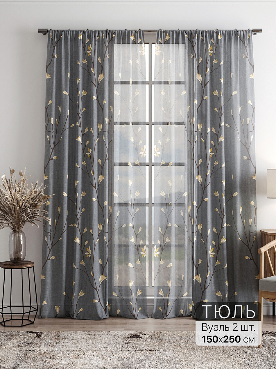 Шторы из тюля бежевого цвета с рисунком бабочки
