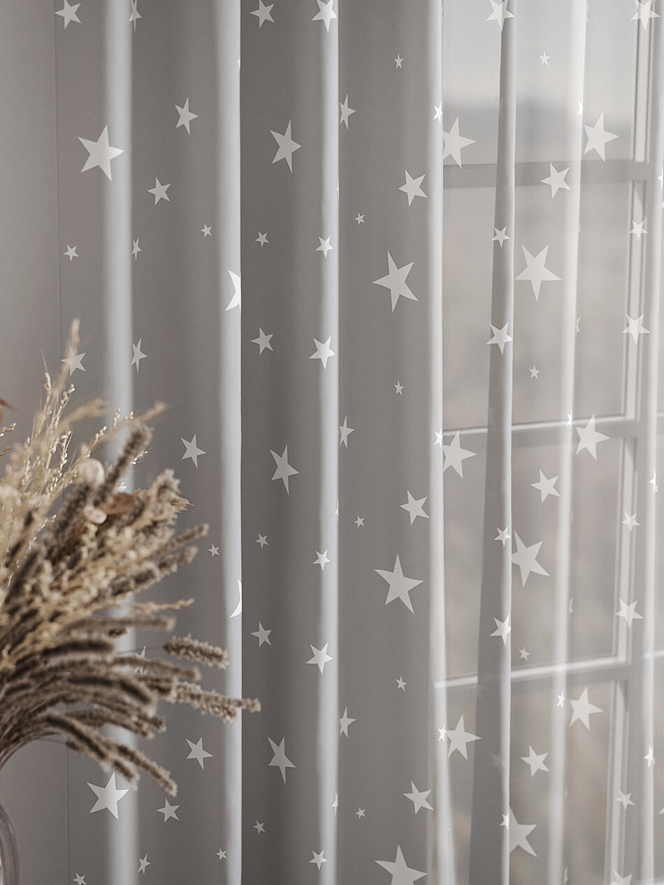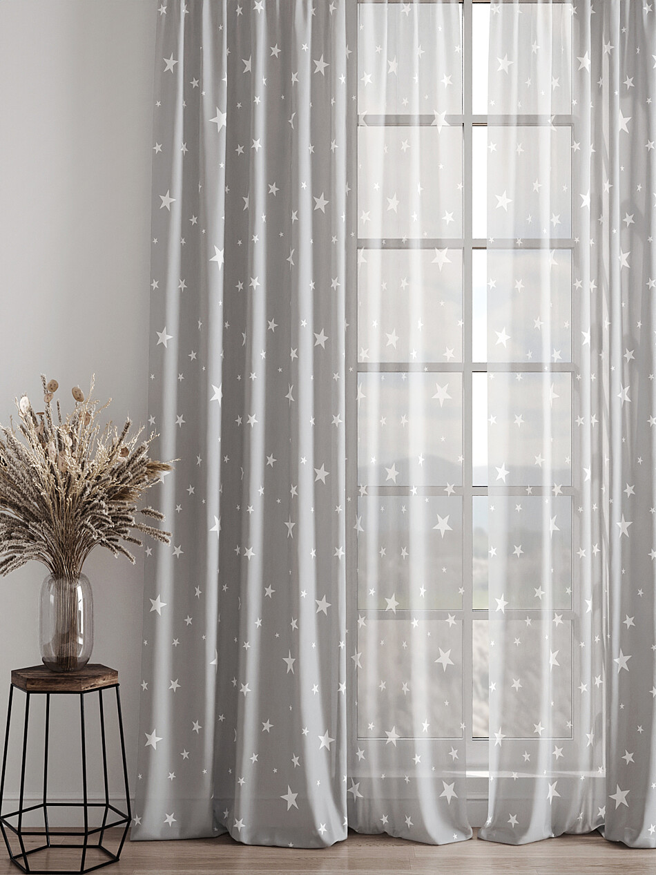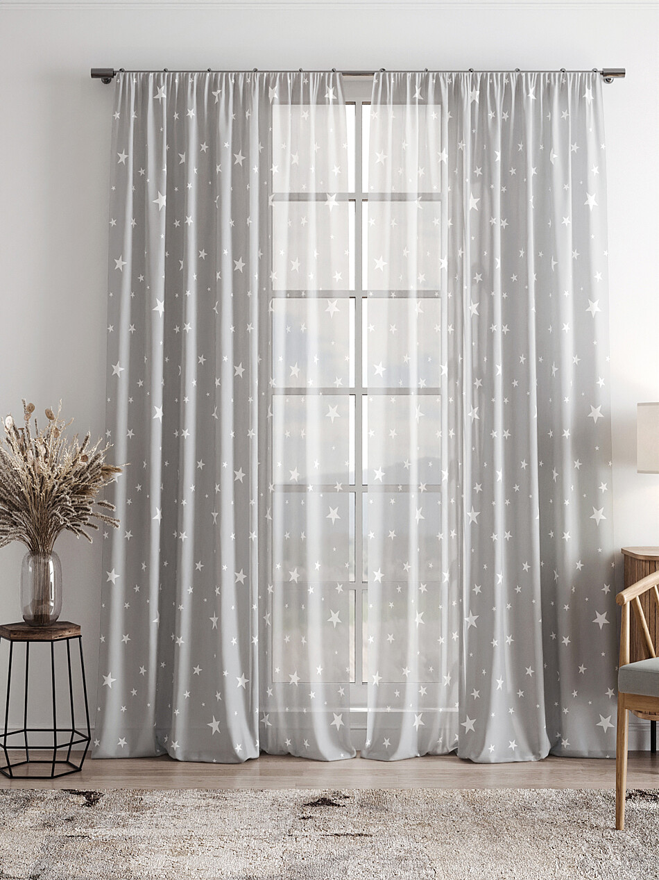 Шторы из тюля бежевого цвета с рисунком бабочки