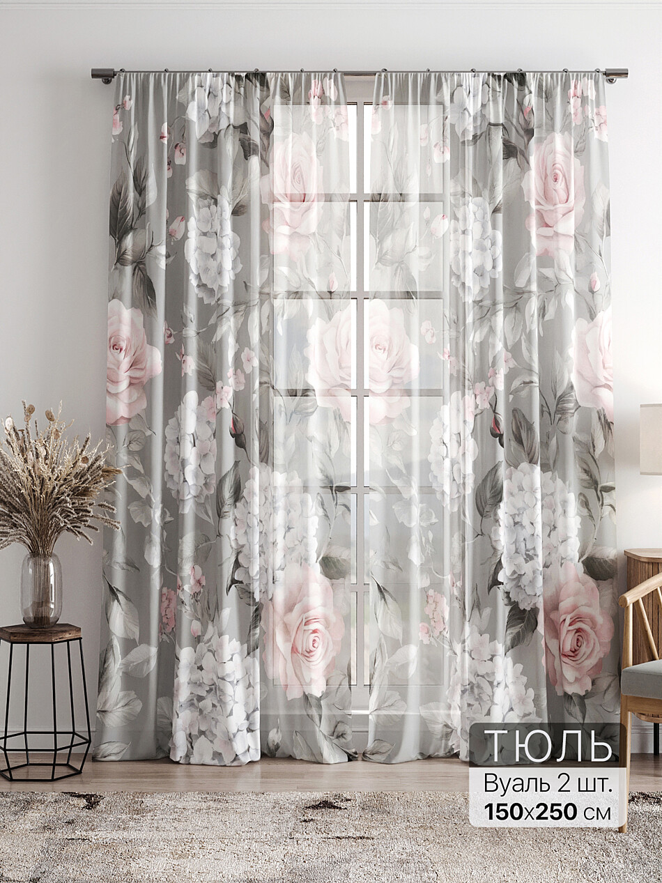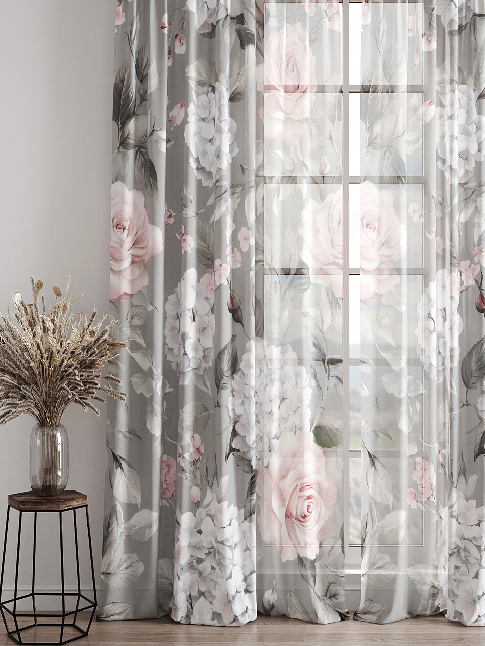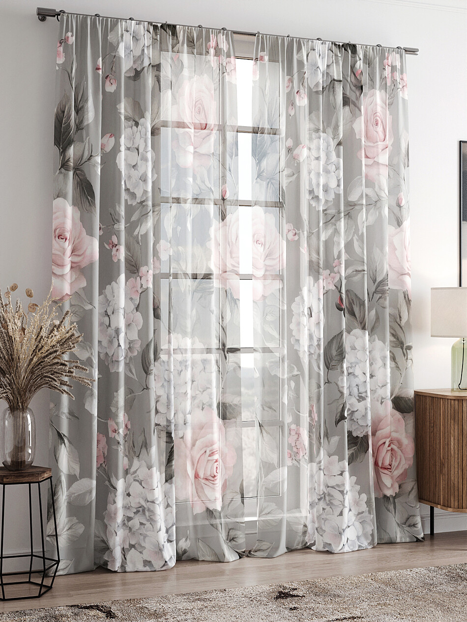 Шторы из тюля бежевого цвета с рисунком бабочки