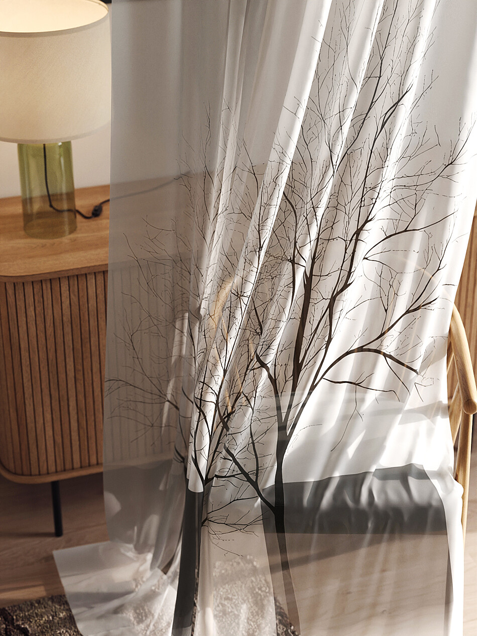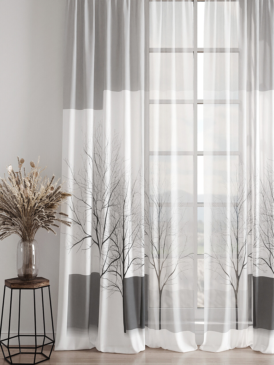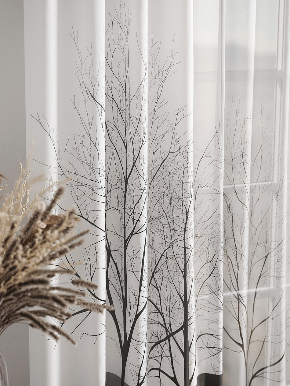 Шторы из тюля с рисунком деревьев
