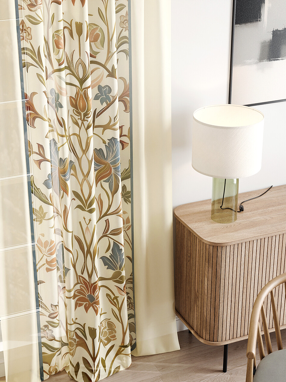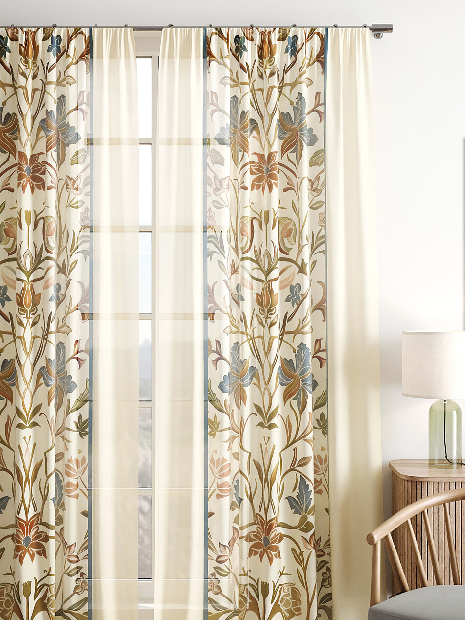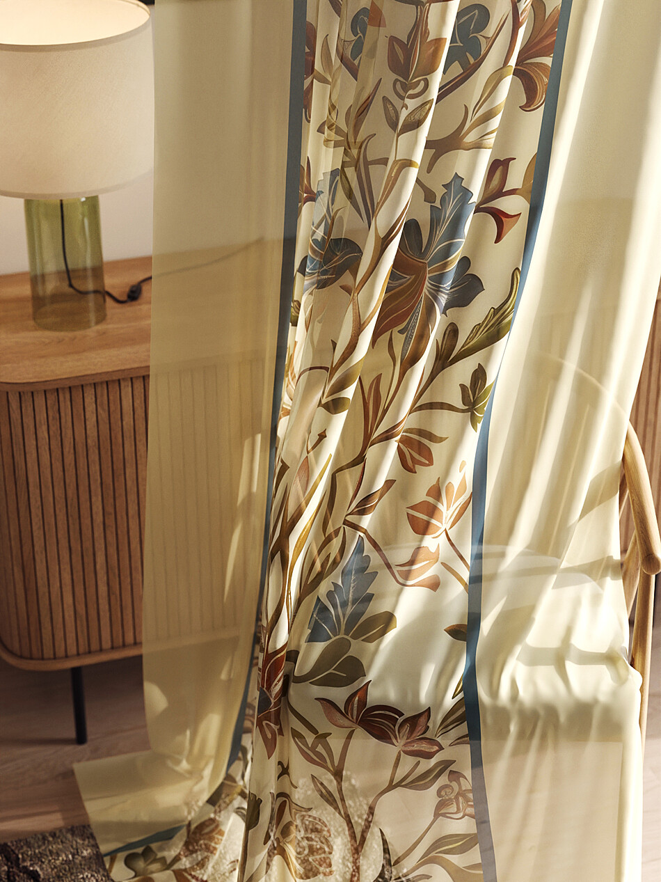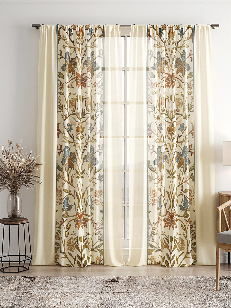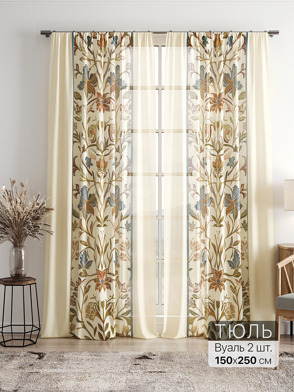 Шторы из тюля бежевого цвета с рисунком бабочки