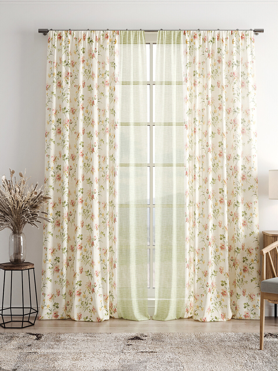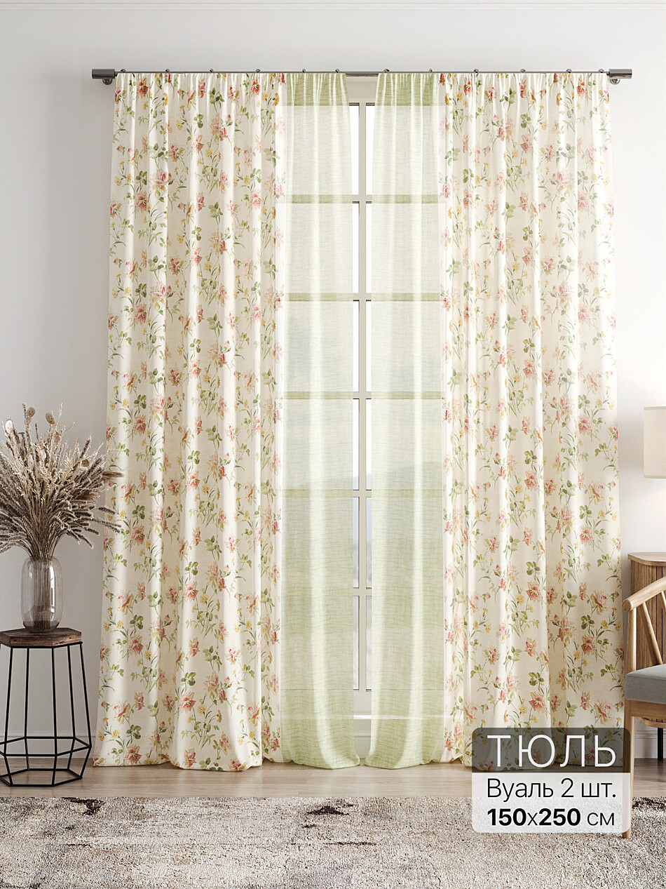 Шторы из тюля бежевого цвета с рисунком бабочки