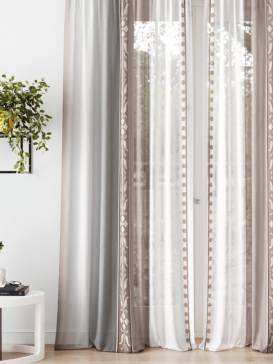 Шторы из тюля бежевого цвета с рисунком омбре