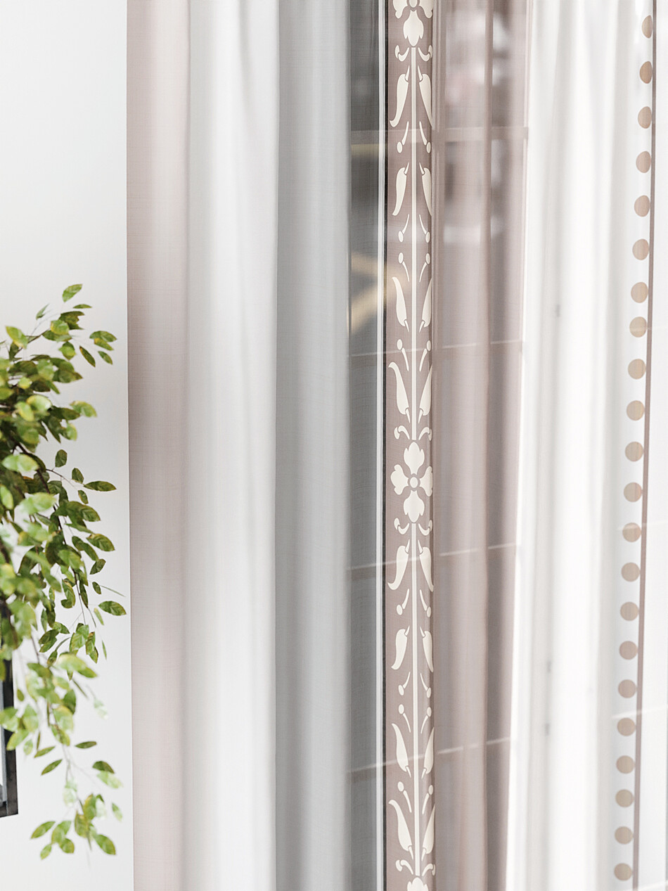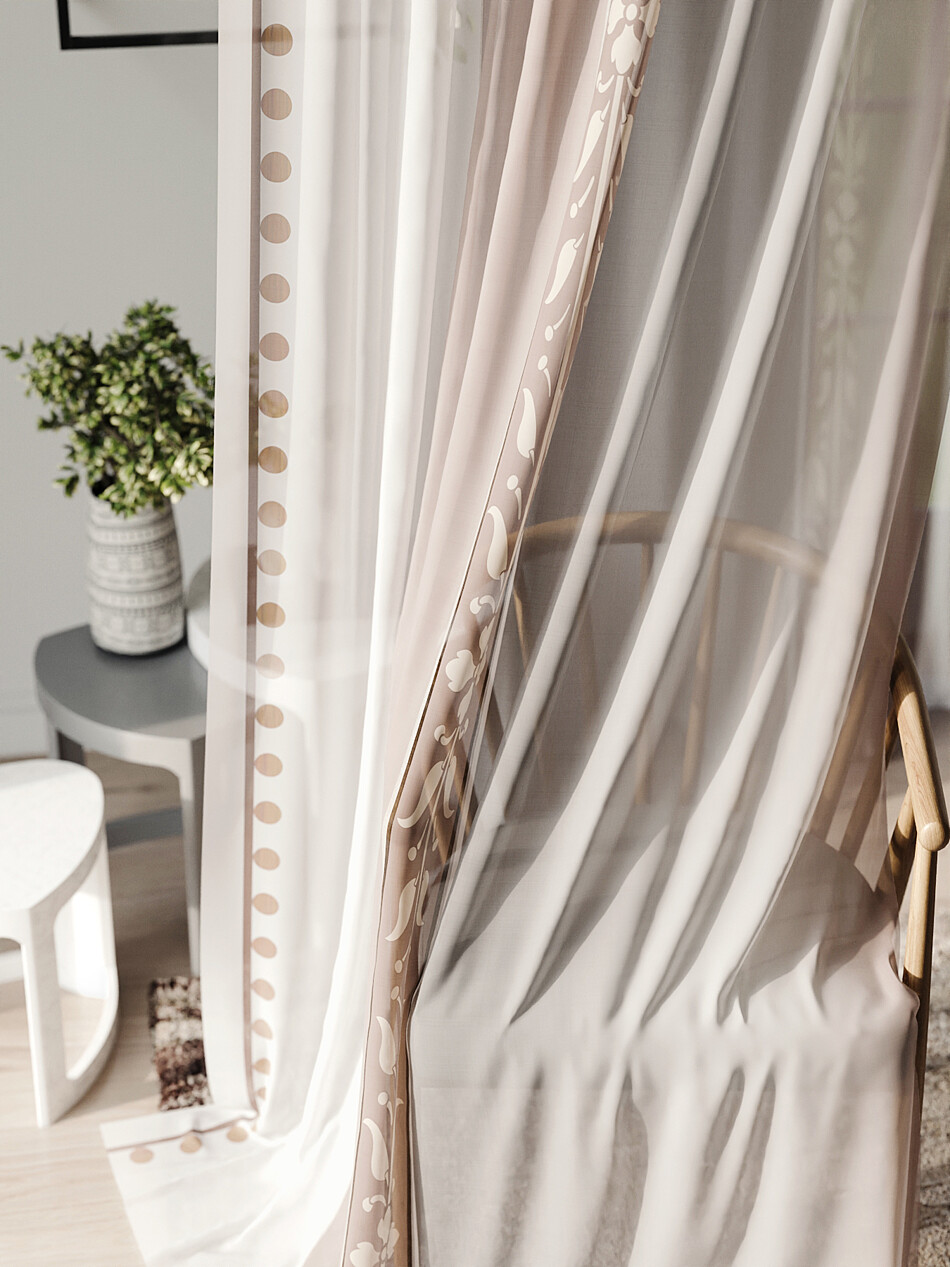 Шторы из тюля бежевого цвета с крупным рисунком