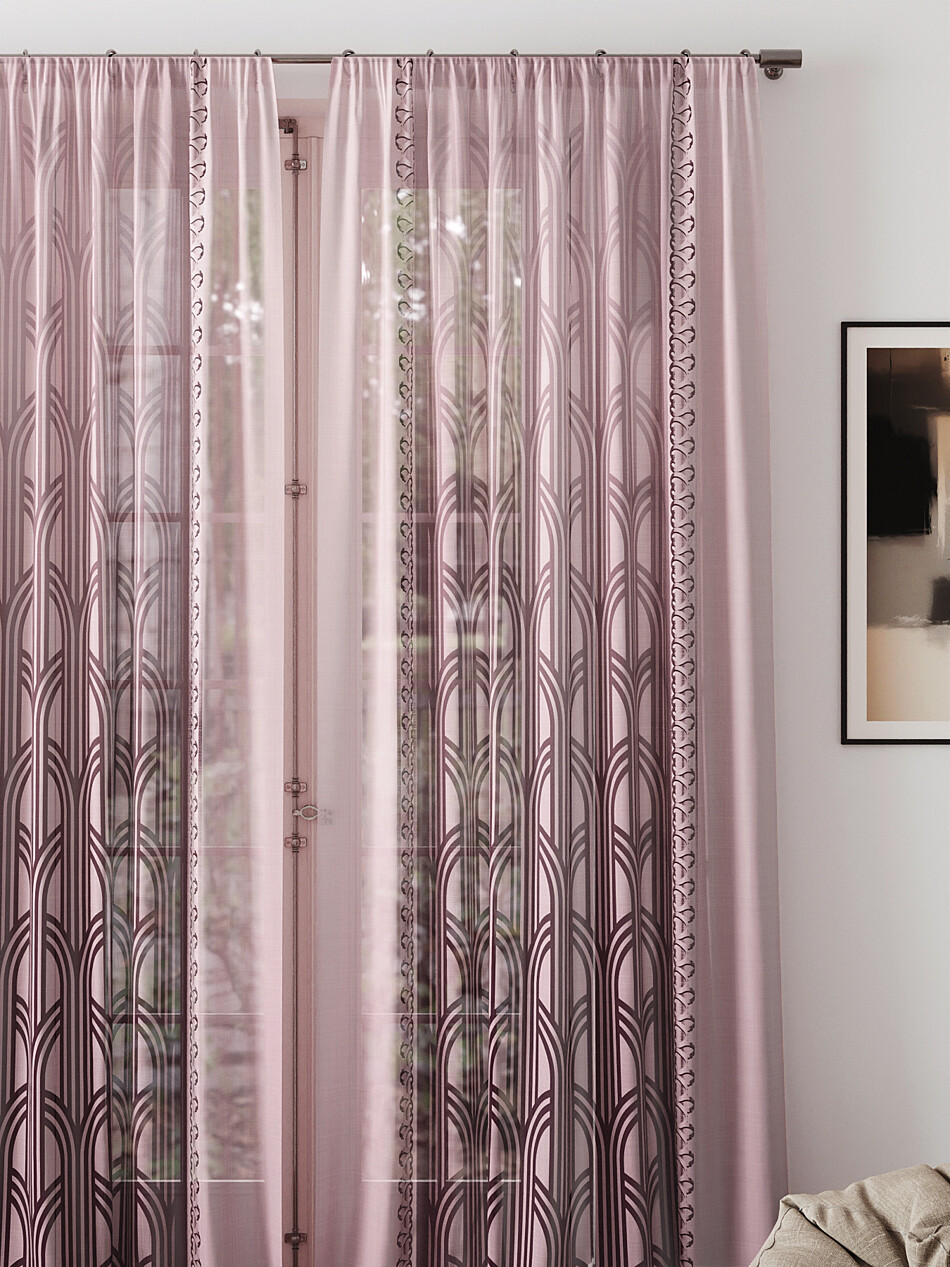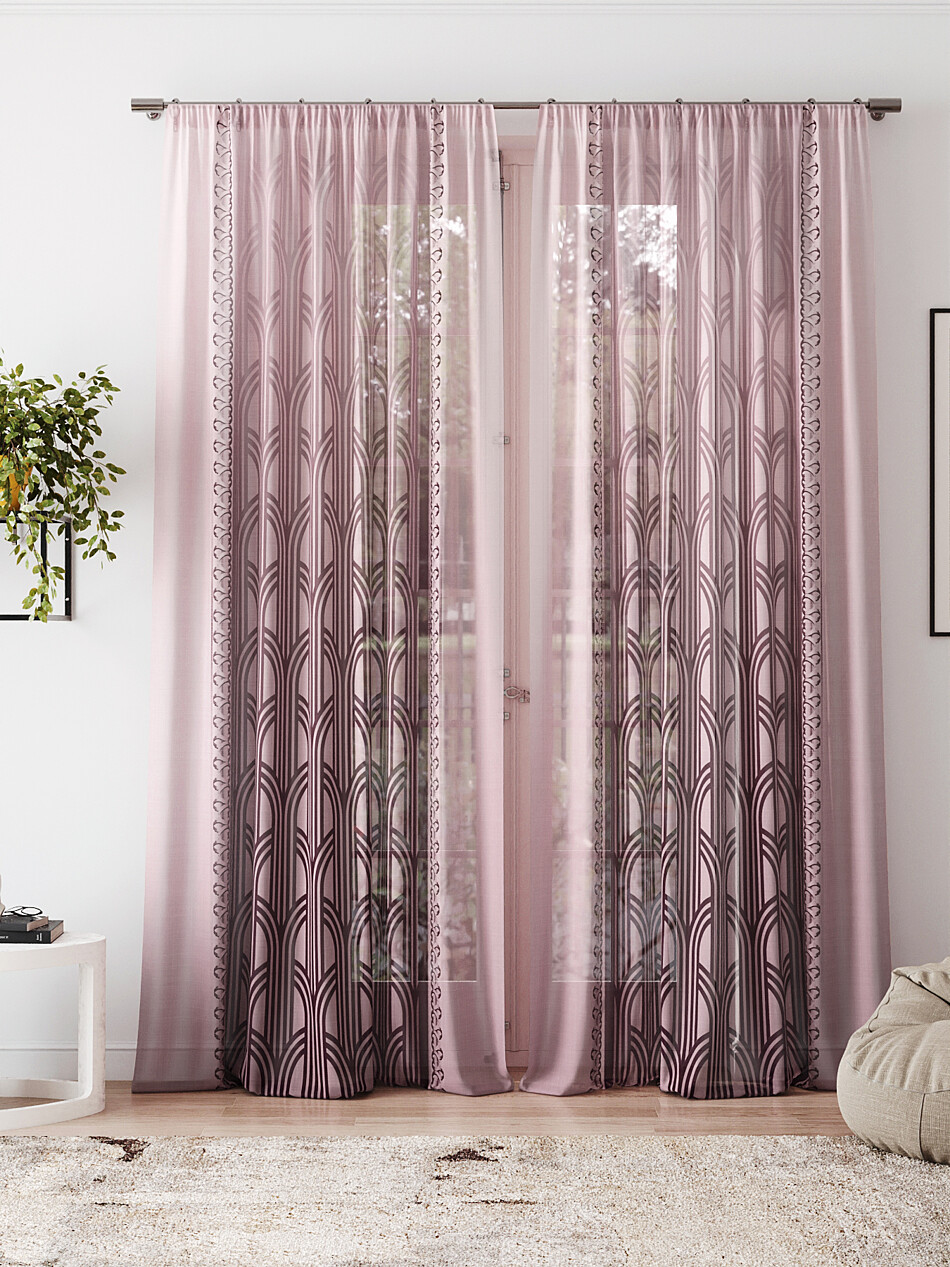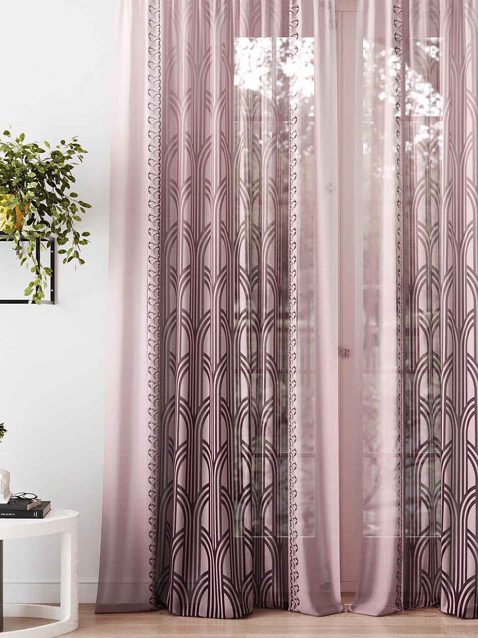 Шторы из тюля бежевого цвета с ажурным рисунком