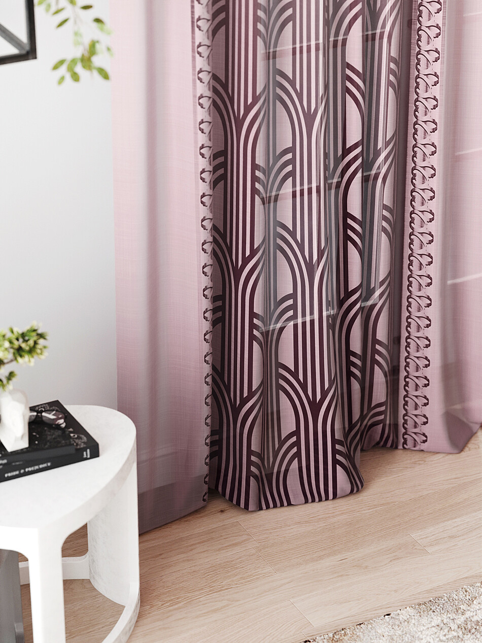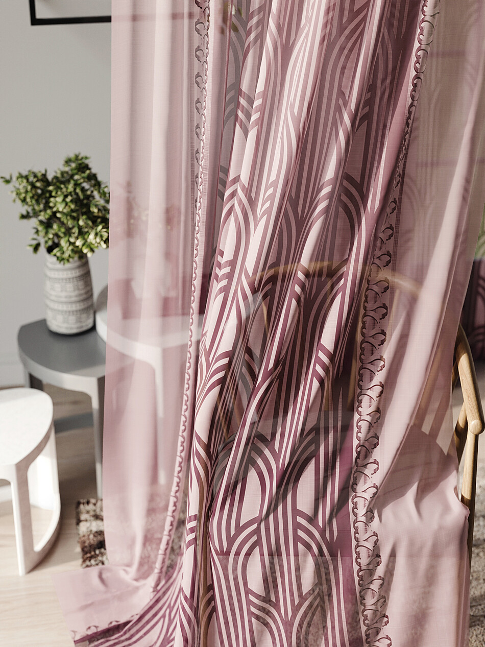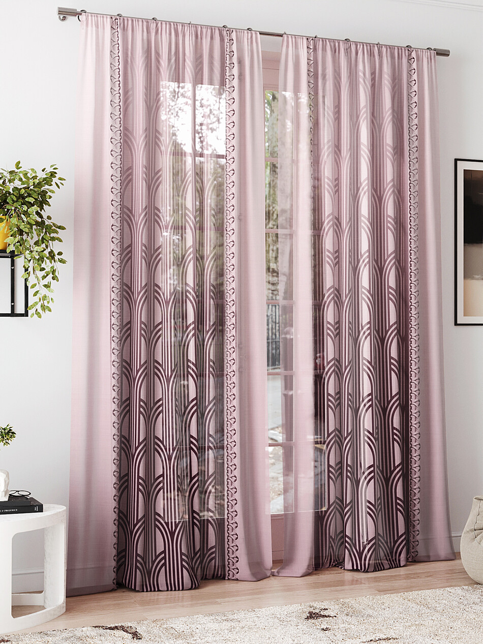 Шторы из тюля бежевого цвета с ажурным рисунком