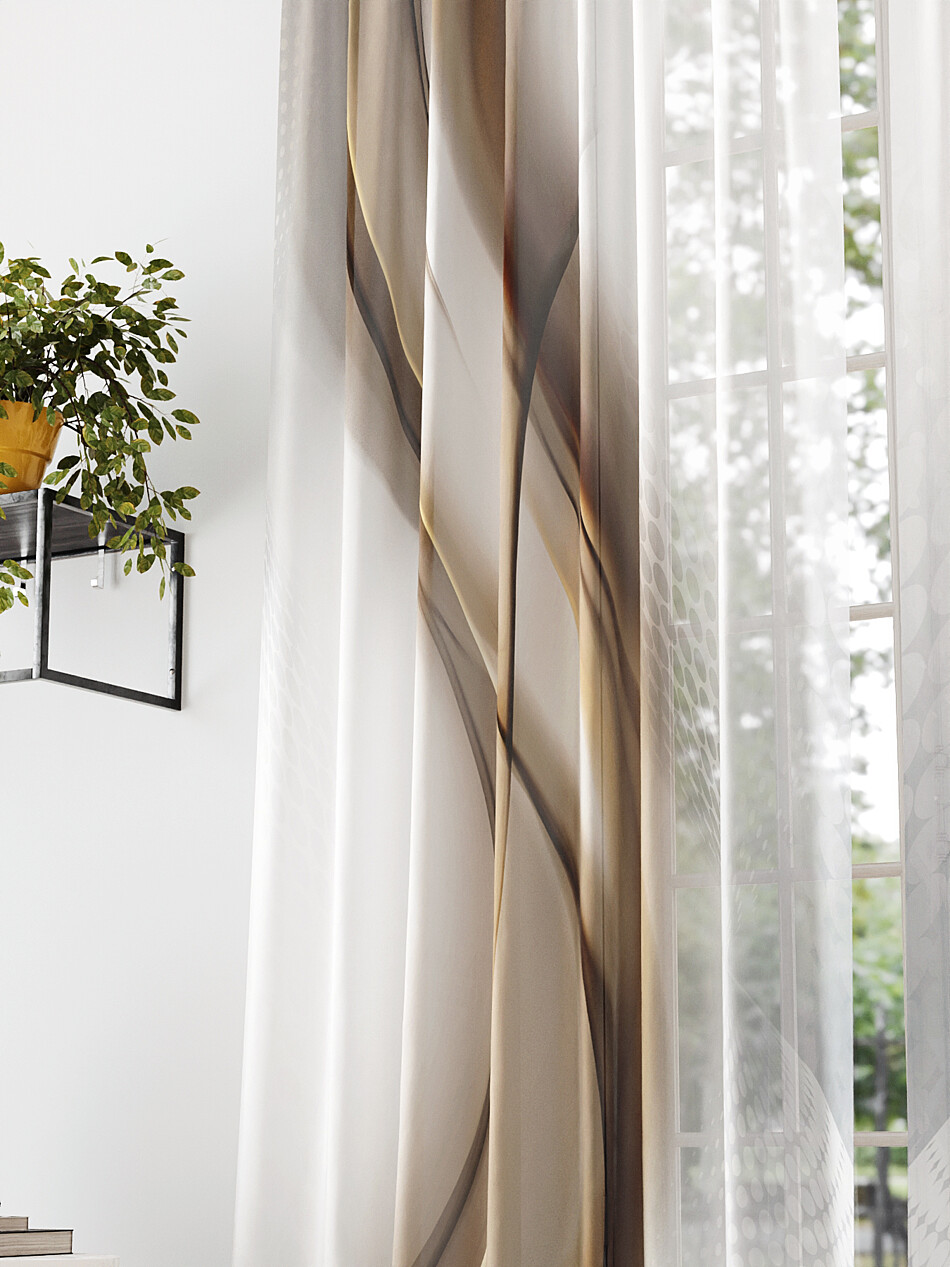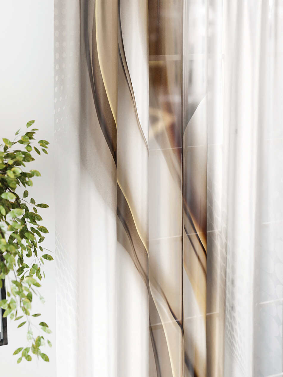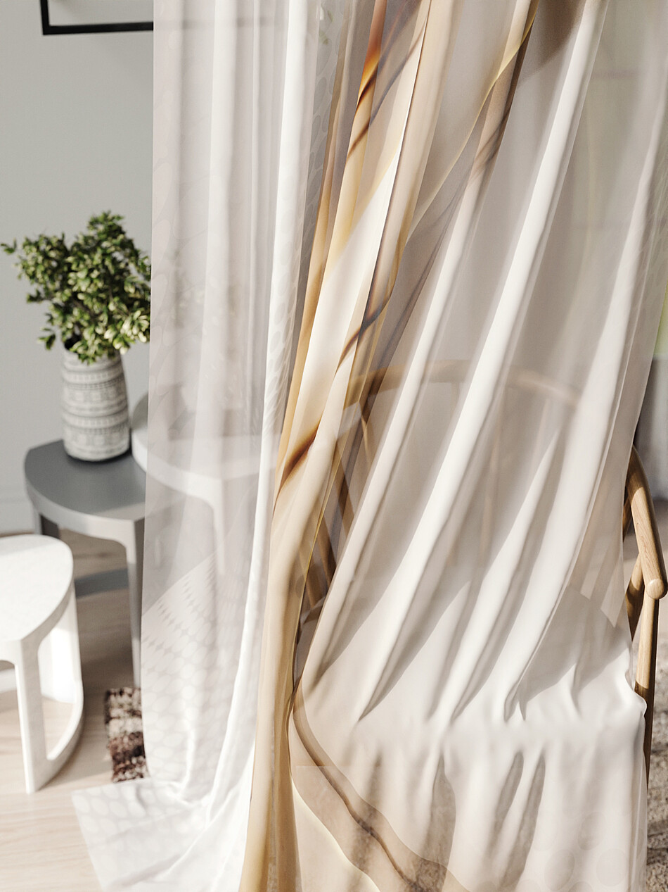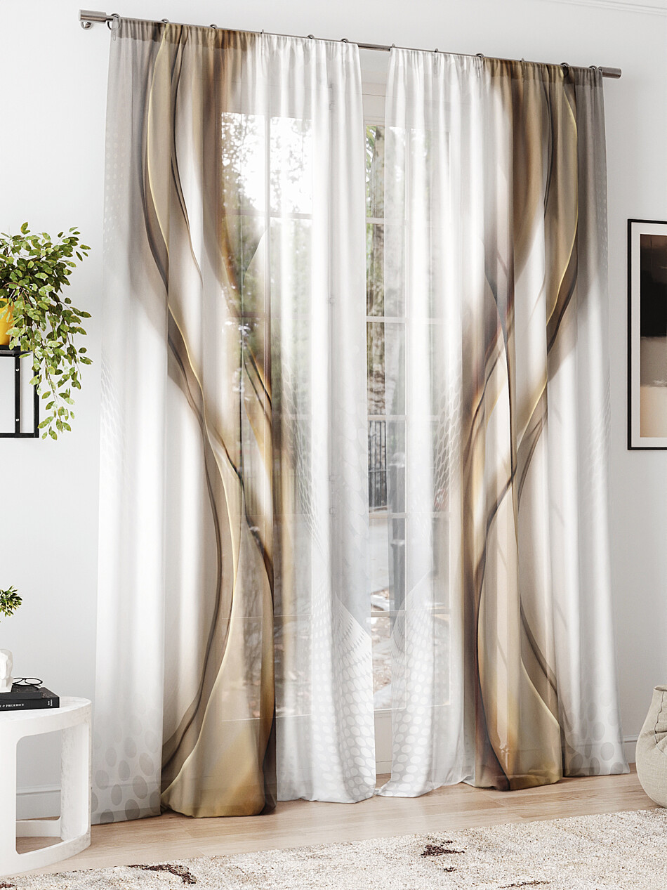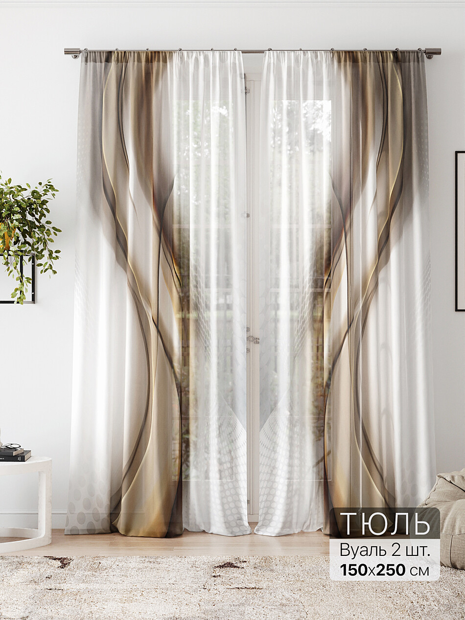 Шторы из тюля бежевого цвета с ажурным рисунком